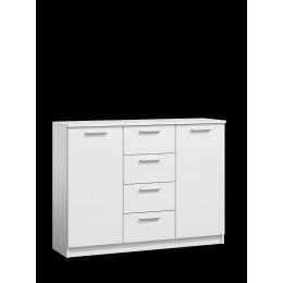 Rozměry: - šířka: 118 cm - výška: 88 cm - hloubka: 35 cm Materiál: - korpus - laminovaná dřevotříska, - hrany - zakončené ABS plastem - zásuvky - kuličkové pojezdy Barva: - bílá