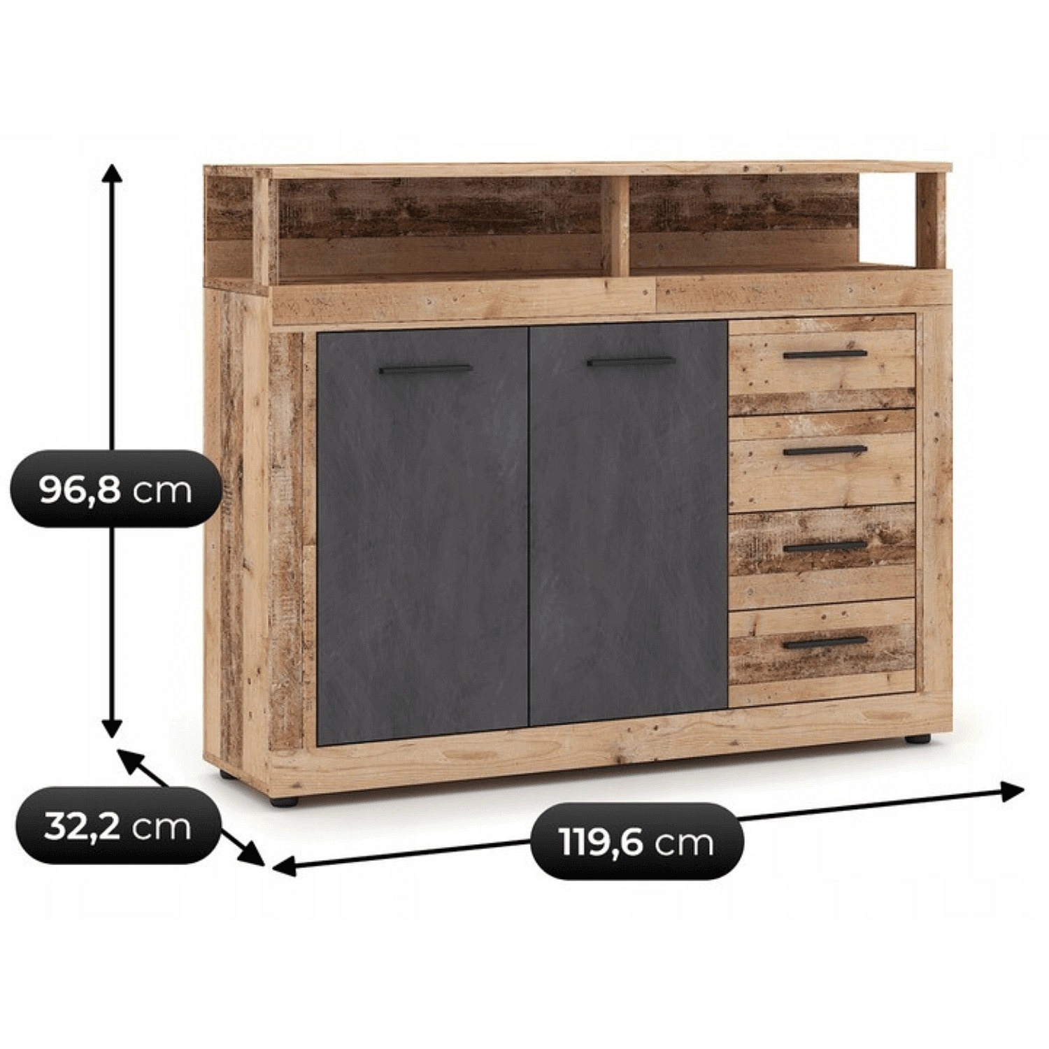 Komoda BLAGO MIDI A 119,6 cm Surový Dub/Černá