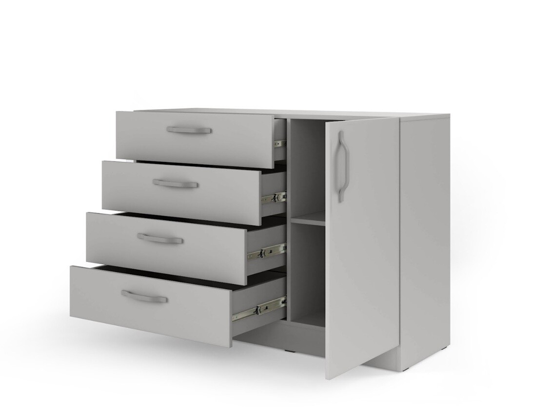 Tato kombinovaná komoda nabízí dostatek úložného prostoru pro všechny vaše potřeby. S šířkou 121 cm, výškou 85 cm a hloubkou 40 cm poskytuje dostatek místa pro uložení oblečení, dokumentů nebo jiných osobních věcí. Její promyšlený design zahrnuje jak zásuvky, tak police, což umožňuje efektivní organizaci a snadný přístup ke všem uloženým předmětům.