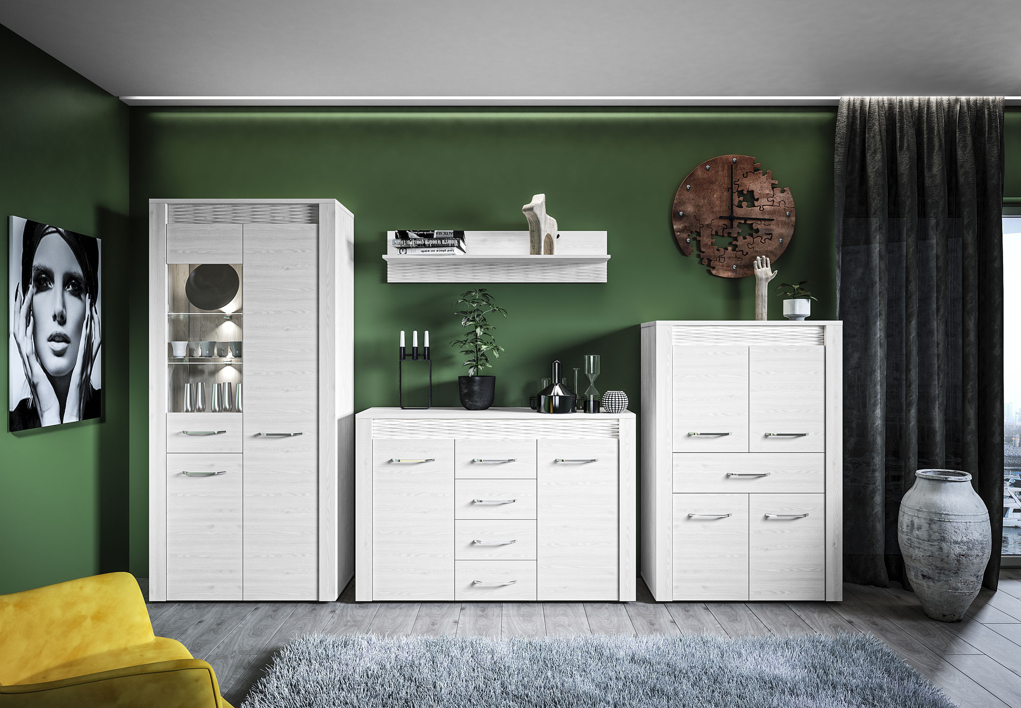 Komoda CLERMONT 07 může v závislosti na svém umístění plnit různé funkce. Díky své funkčnosti je komoda ideálním místem pro vystavení fotografií nebo rodinných památek. Kromě toho má velké množství zásuvek, které usnadňují ukládání nezbytných věcí.
