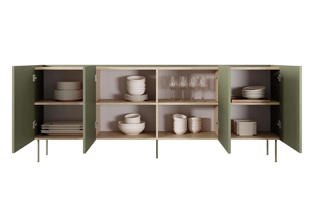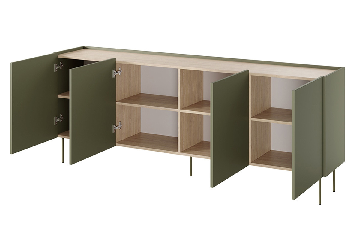 Čtyřdveřová komoda Desin 220 cm - olivový / dub nagano, Šířka: 220, Výška: 85, Hloubka: 40, Výška nožiček: 20