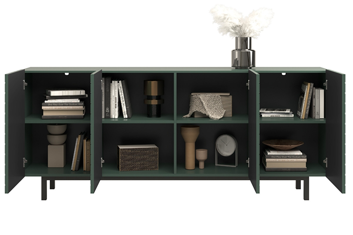 Čtyřdveřová komoda Scalia II 190 4D - labrador mat / černý rám, šířka: 190, výška: 81, hloubka: 42, výška nožiček: 15