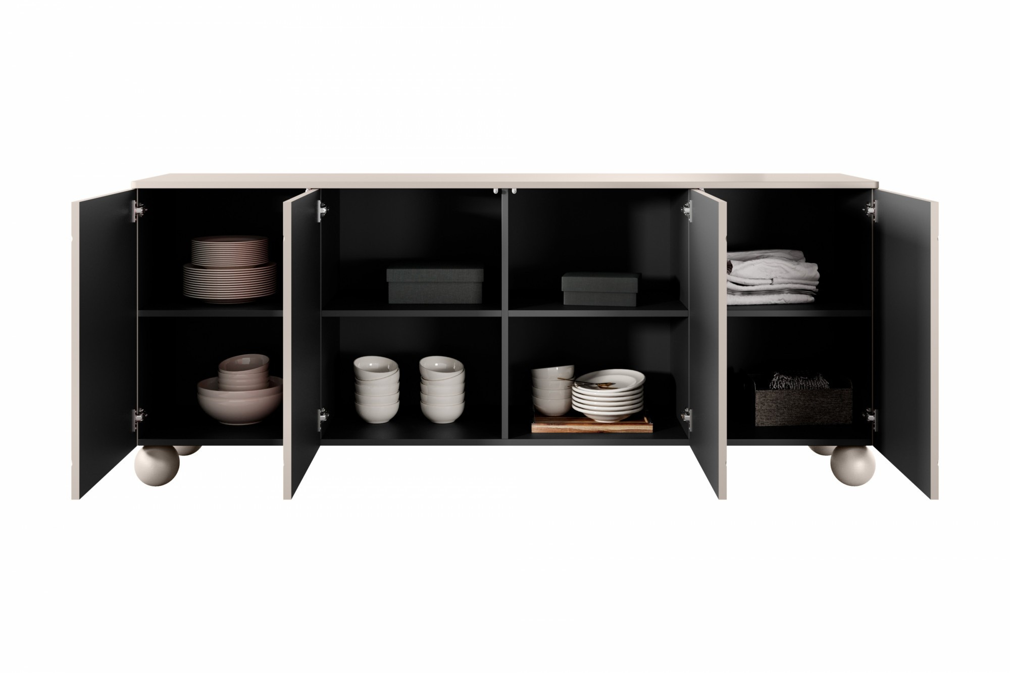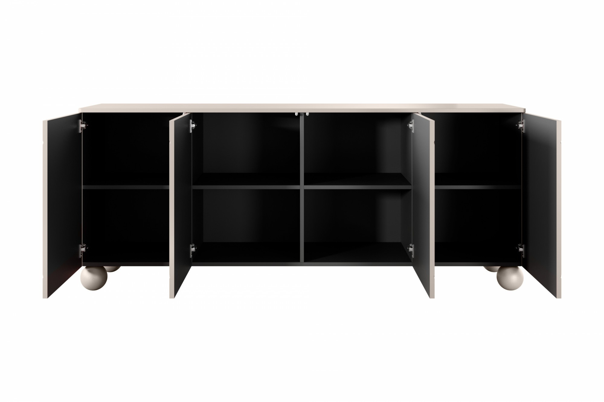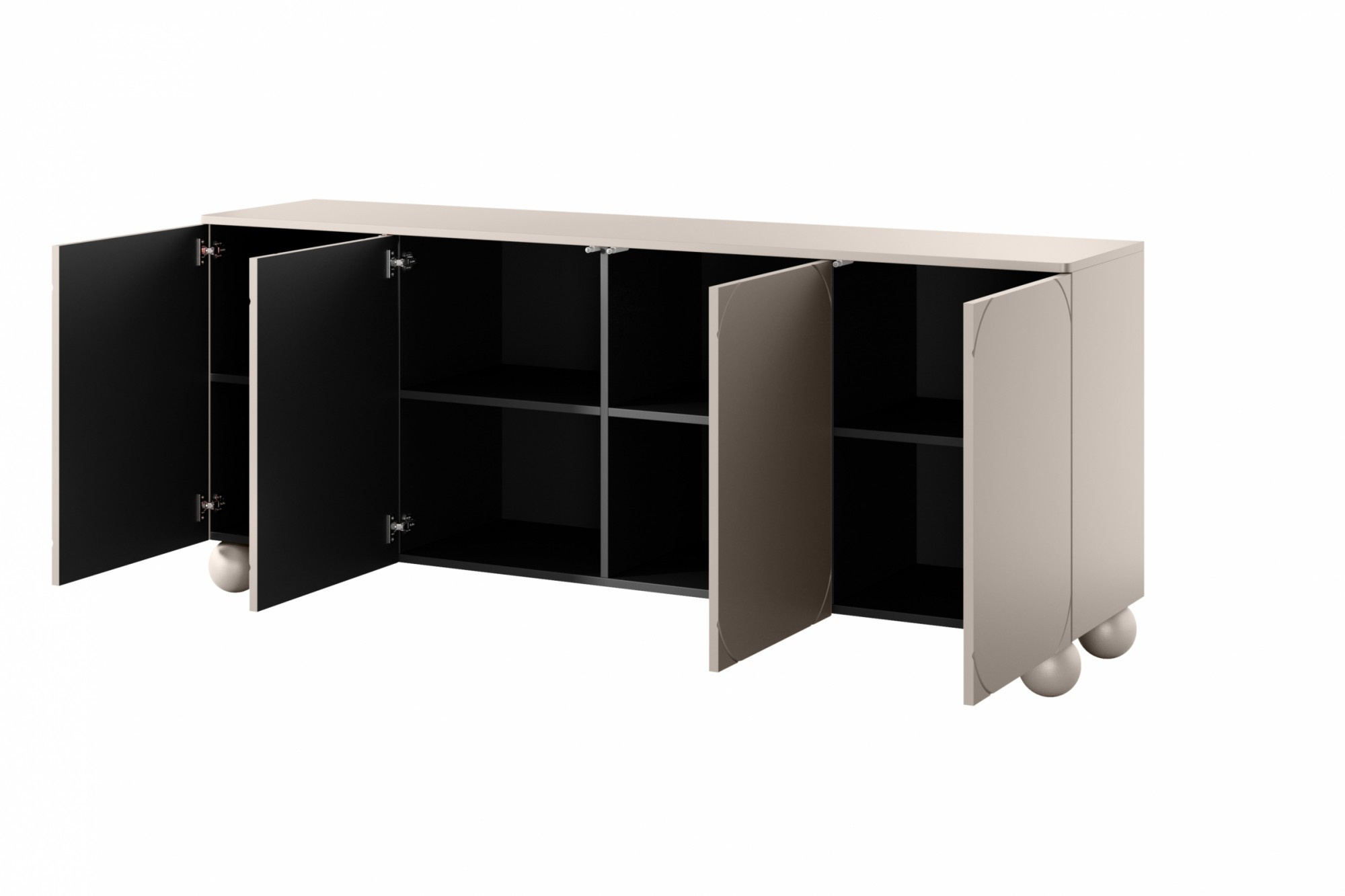 Čtyřdveřová komoda na kulatých nohách Sonatia II 200 cm - kašmír, Šířka: 200, Výška: 82, Hloubka: 45, Výška nožek: 12, Montáž: