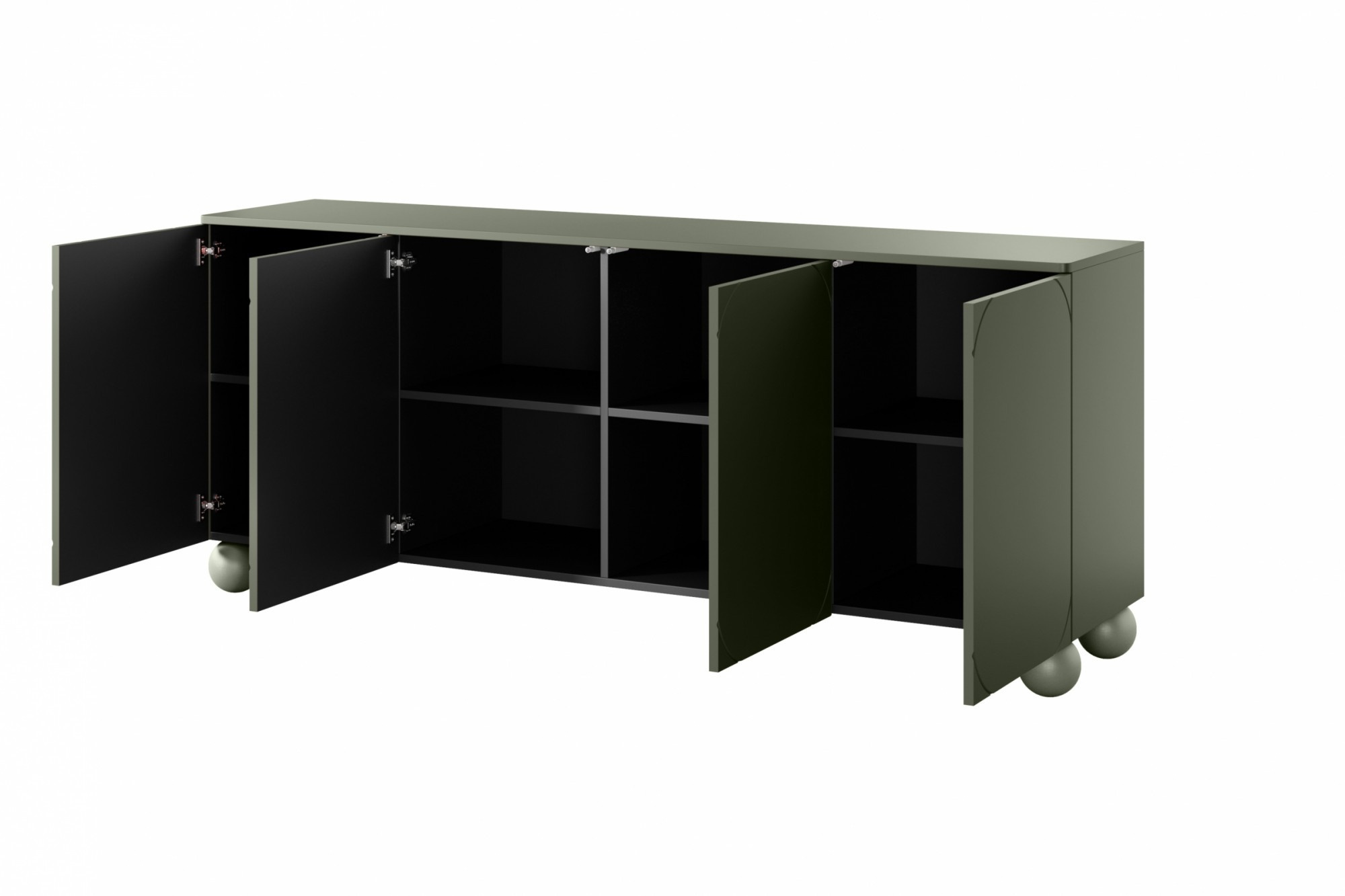 Čtyřdveřová komoda Sonatia II na kulatých nohách 200 cm - olivová, Šířka: 200, Výška: 82, Hloubka: 45, Výška nožek: 12, Montáž: