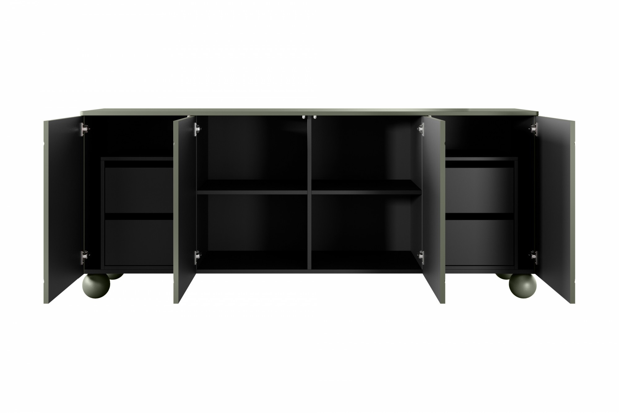 Čtyřdveřová komoda se čtyřmi skrytými zásuvkami Sonatia II 200 cm - olivová, Šířka: 200, Výška: 82, Hloubka: 45, Výška nožek: 12, Montáž: