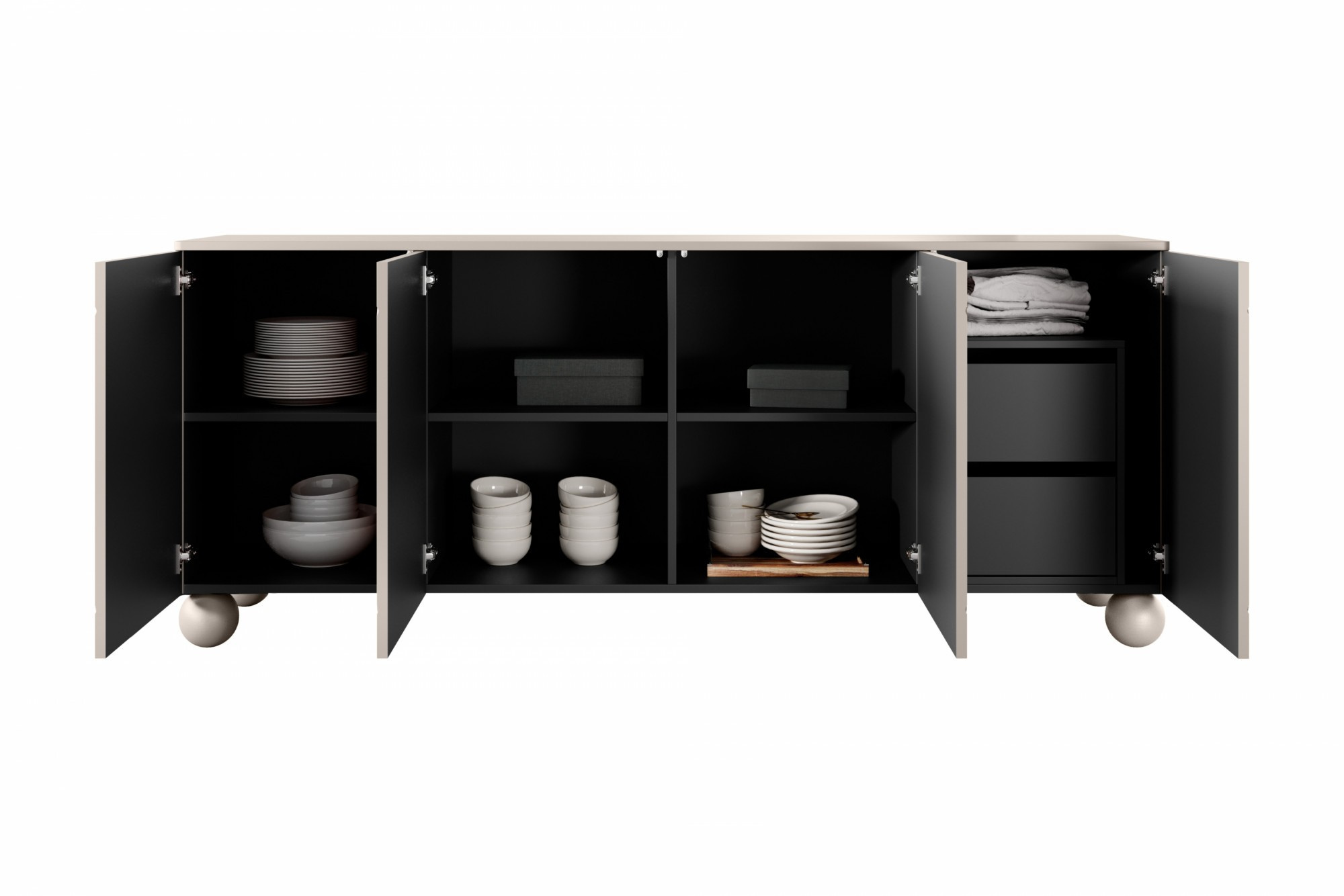 Komoda čtyřdveřová se dvěma skrytými zásuvkami Sonatia II 200 cm - kašmír, Šířka: 200, Výška: 82, Hloubka: 45, Výška nožek: 12, Montáž: