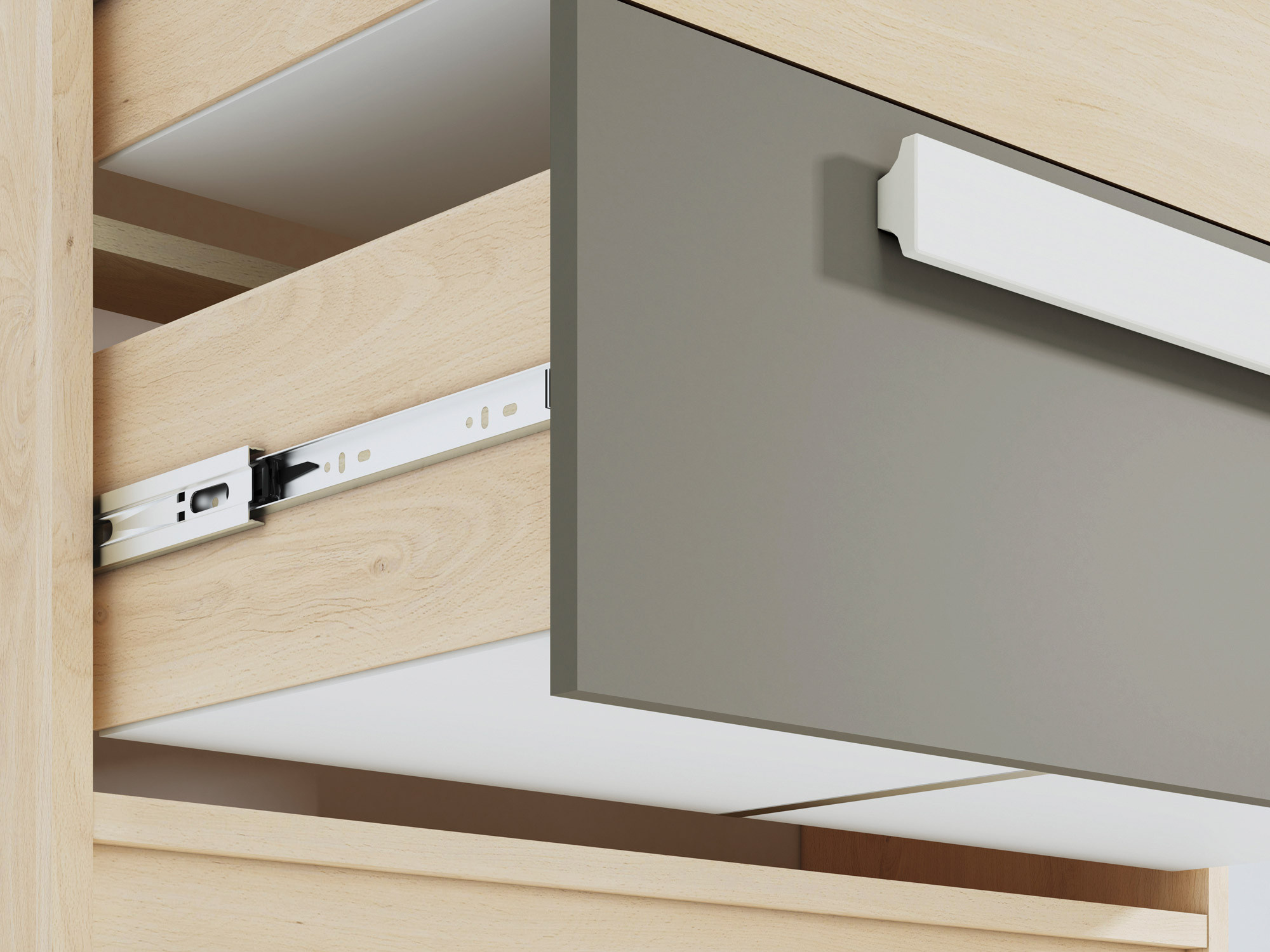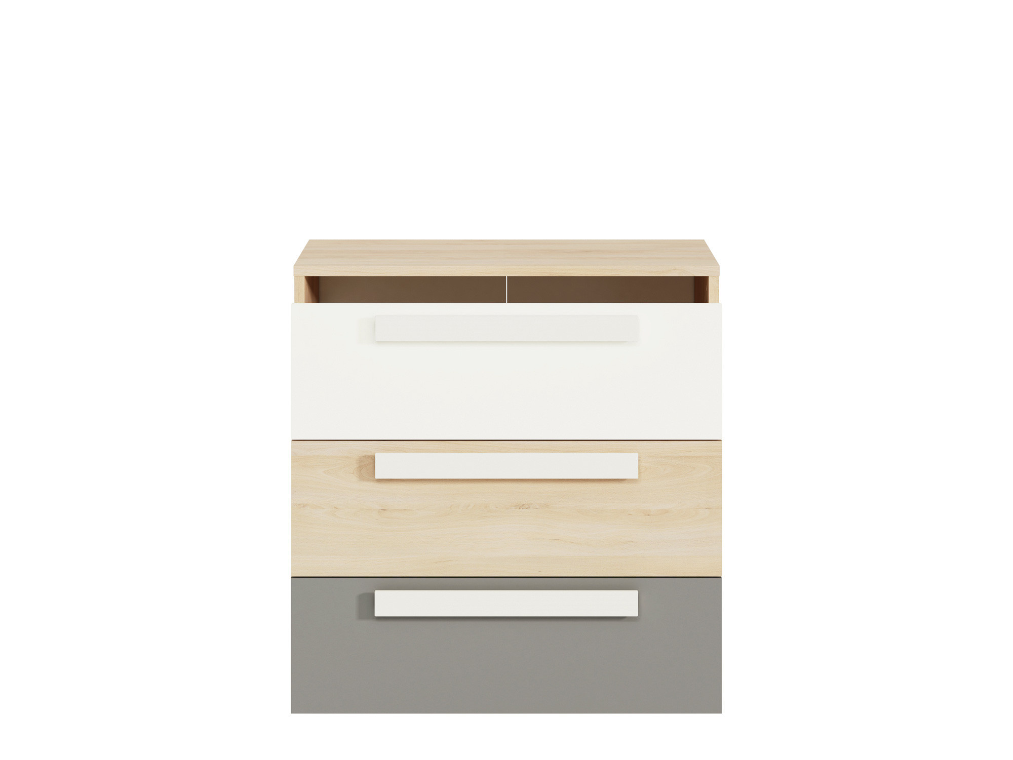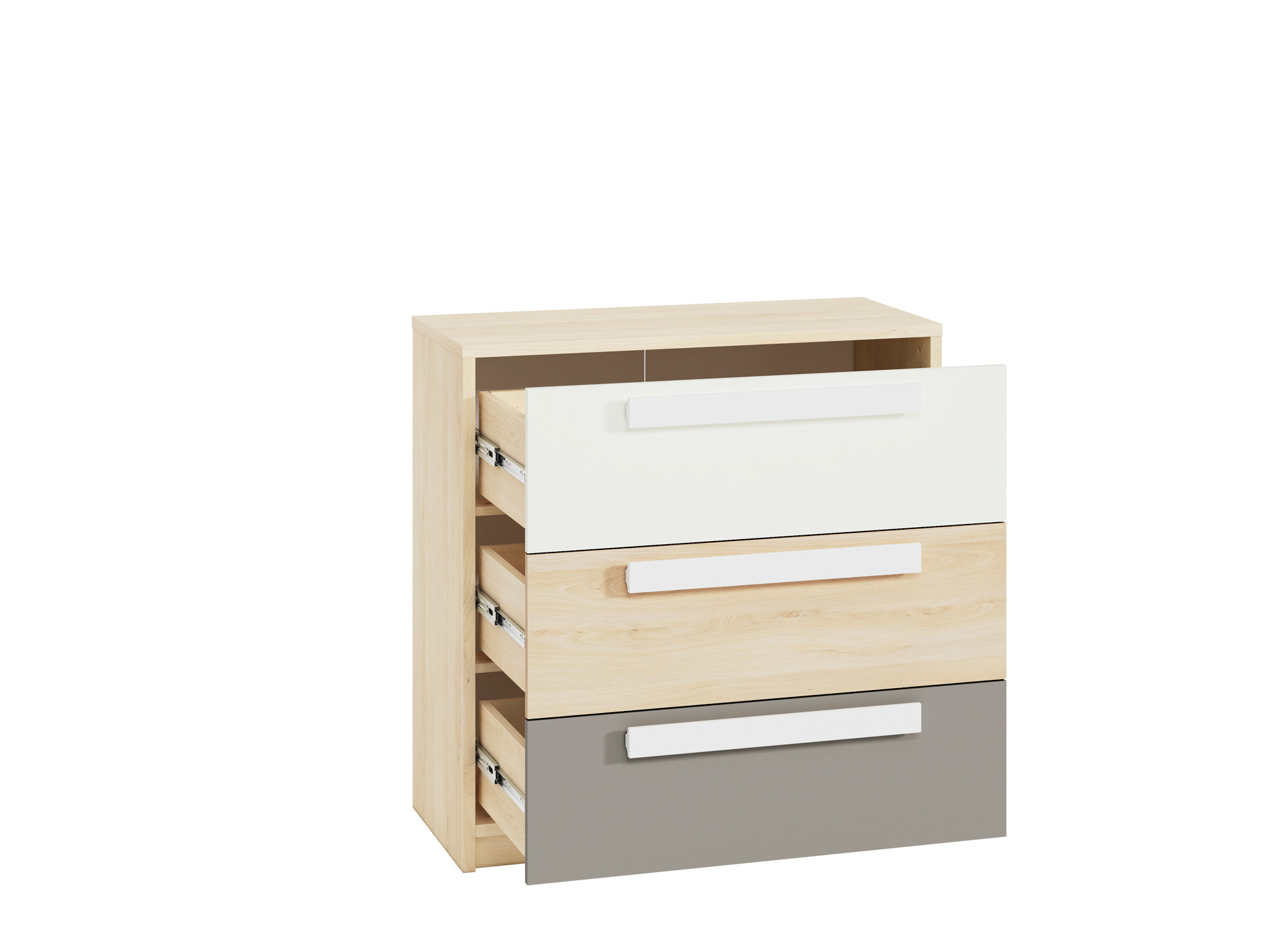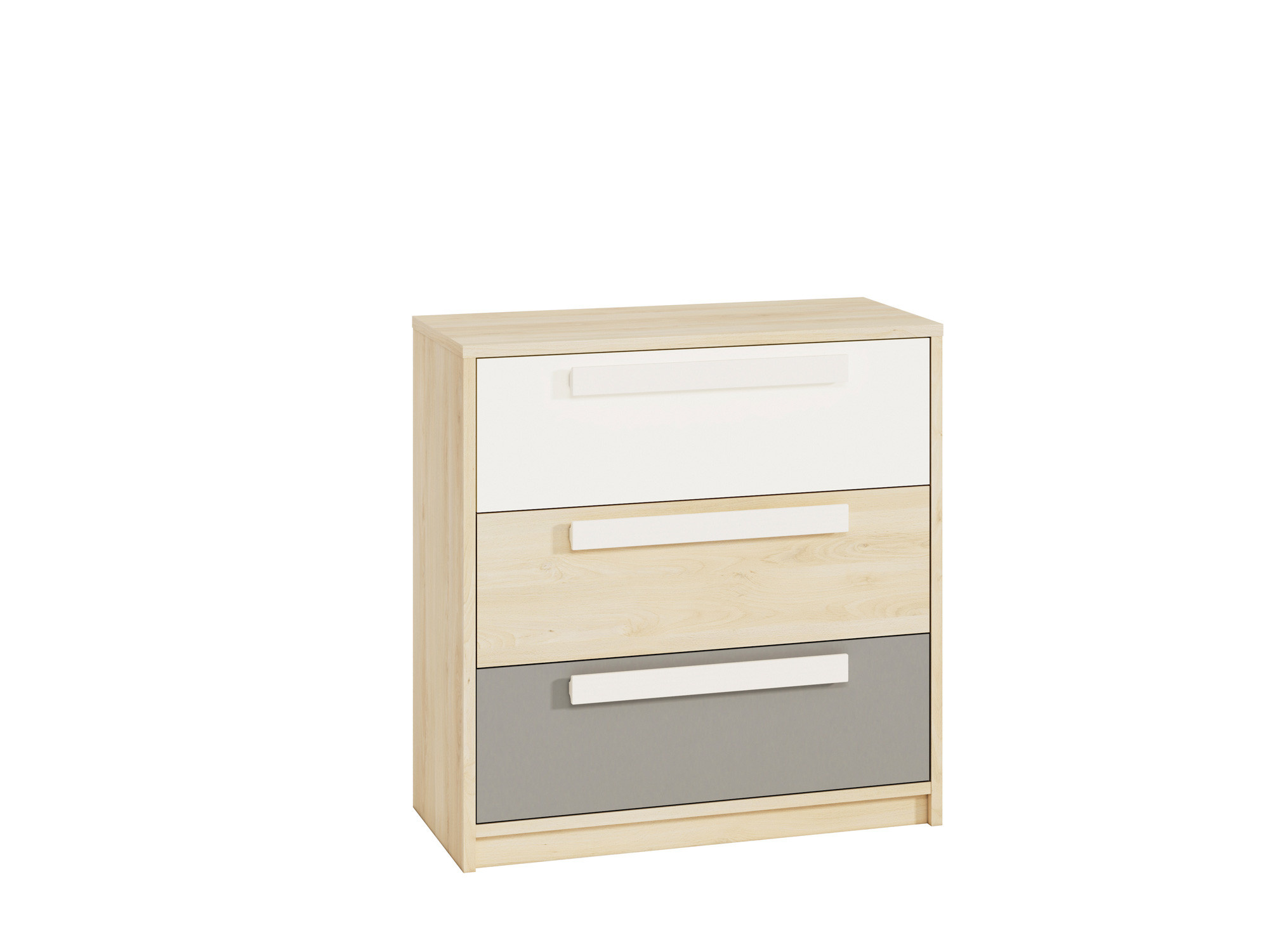 Komoda Drop 1001, Buk Fjord/Bílá/Šedá platina