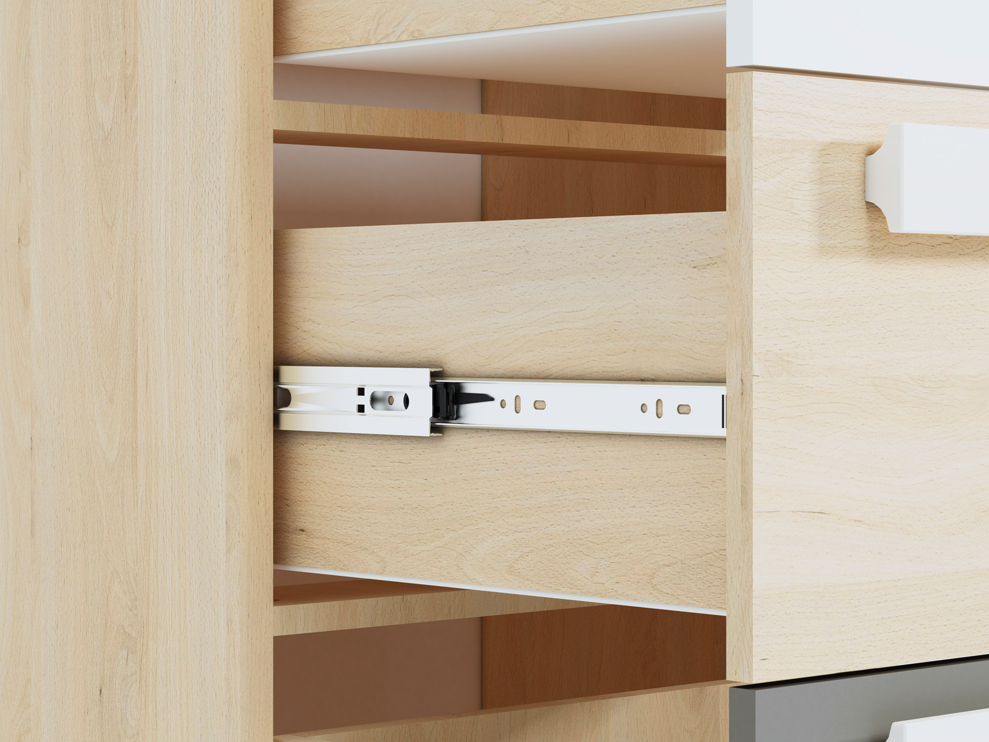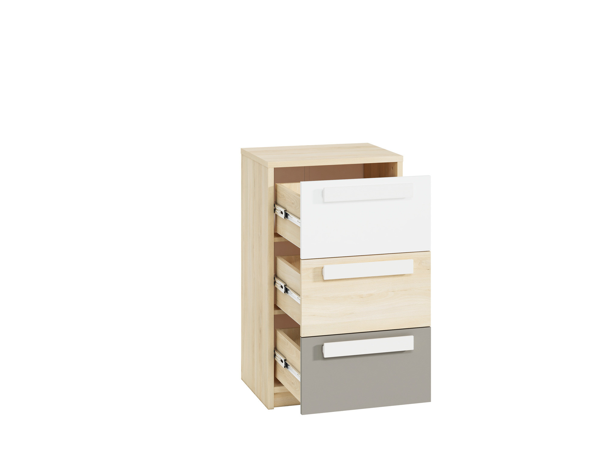 Każdy system dziecięcy musi w swojej ofercie posiadać pojemną komodę, która skryje wszystkie skarby naszych pociech – począwszy od ubrań, a kończąc na zupełnie niekonwencjonalnych przedmiotach o różnych kształtach. System szuflad w naszej komodzie DROP 08 jest wyposażony w pełny wysuw, dzięki czemu wkładanie do nich nawet dużych przedmiotów - nie stanowi problemu. Pojemność szuflad oraz nierysujący się blat w kolorze buk fjord to tylko niektóre z zalet naszej bryły. Dodatkowo musimy nadmienić, iż każda z komód jest w pełni wyważona i przyjazna dla dzieci.