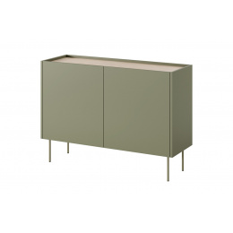 Dvoudveřová komoda Desin 120 cm - olivový / dub nagano, šířka: 120, výška: 85, hloubka: 40, výška nožiček: 20