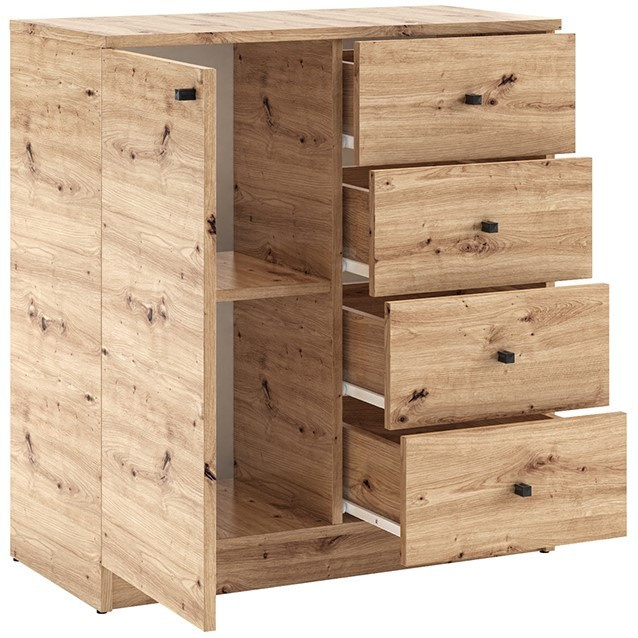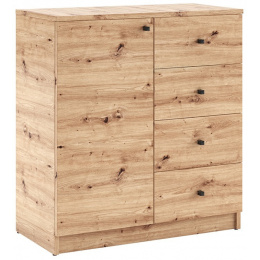 Komoda Evi je elegantní spojení minimalistického designu s funkčností. Její jednoduchá forma je zároveň moderní a univerzální, hodící se do mnoha různých interiérových stylů. Komoda Evi má promyšlená praktická řešení, jako jsou zásuvky a police, které umožňují ukládání různých předmětů v pořádku. Její minimalistická forma umožňuje snadné začlenění do různých aranžmá místností, ať už v obývacím pokoji, ložnici nebo dokonce v kanceláři.