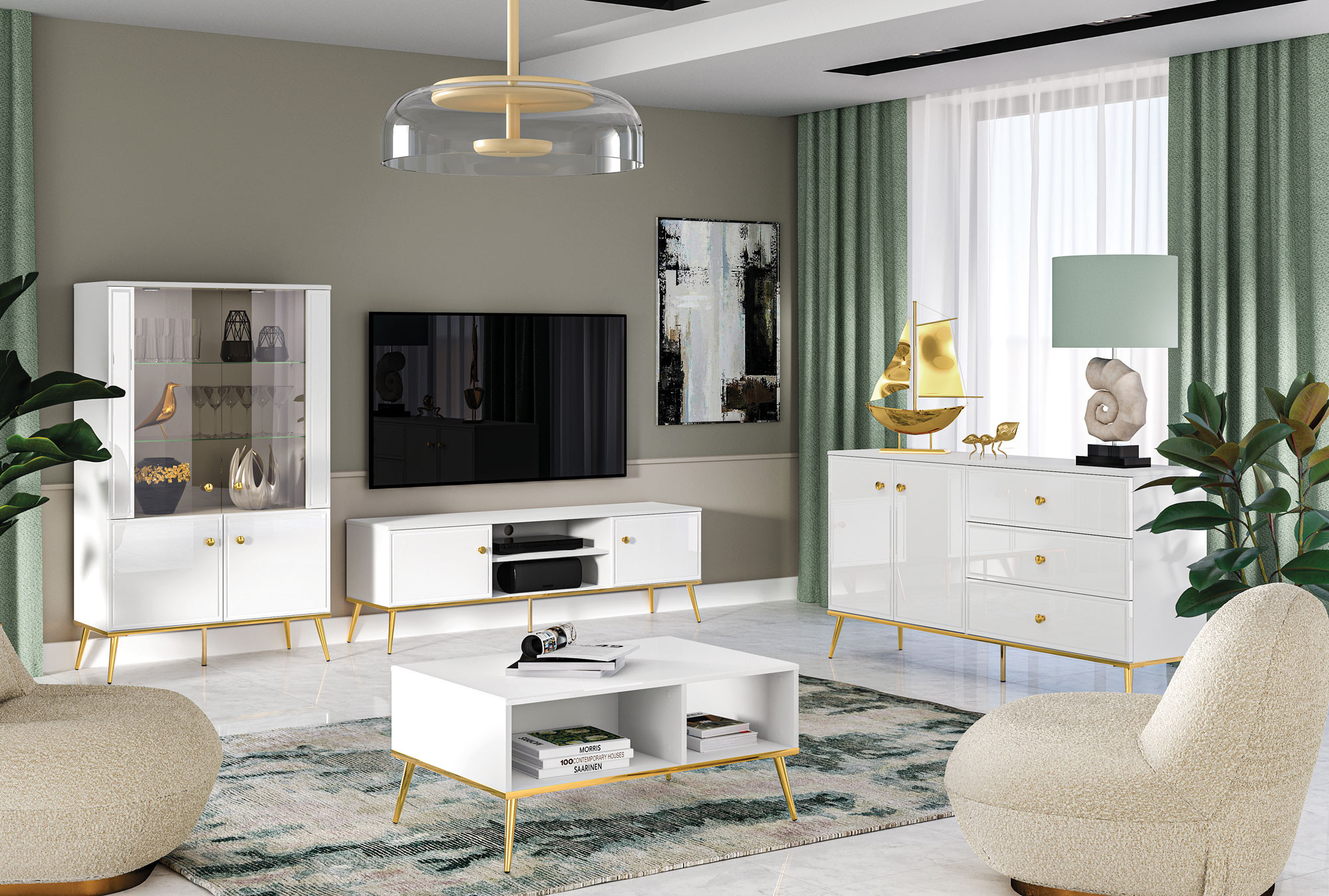 Komoda GOLDIN 05, Alpská bílá/Bílý Lesk