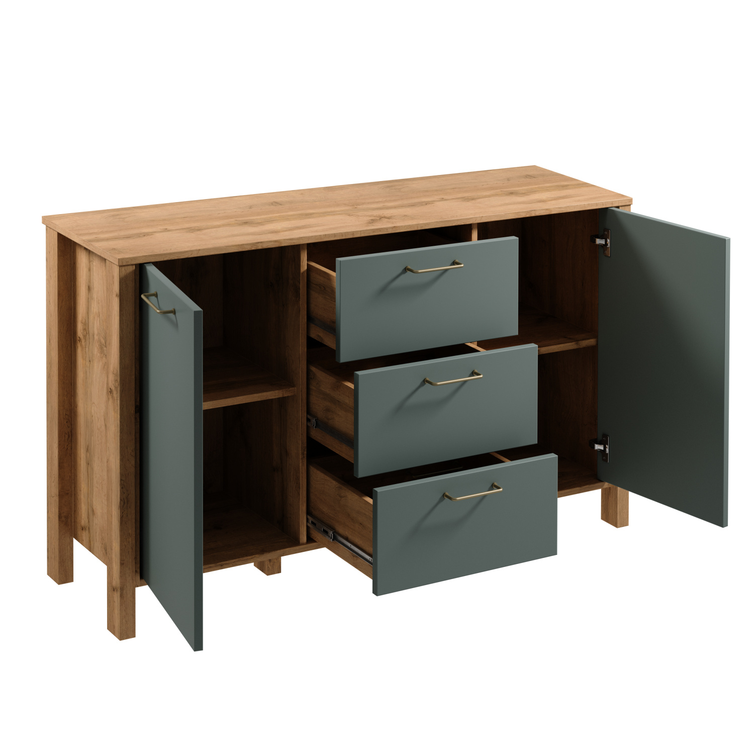 Komoda INDYGO K2D3S, Dub Wotan/Zelená
