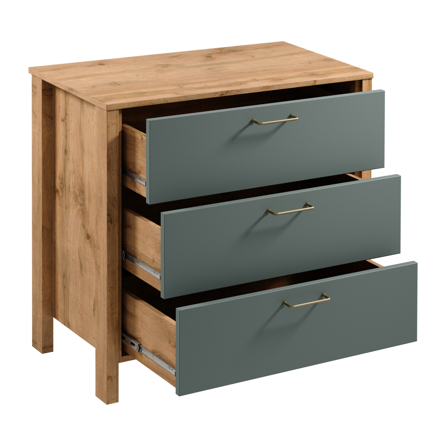 Komoda INDYGO K3S, Dub Wotan/Zelená