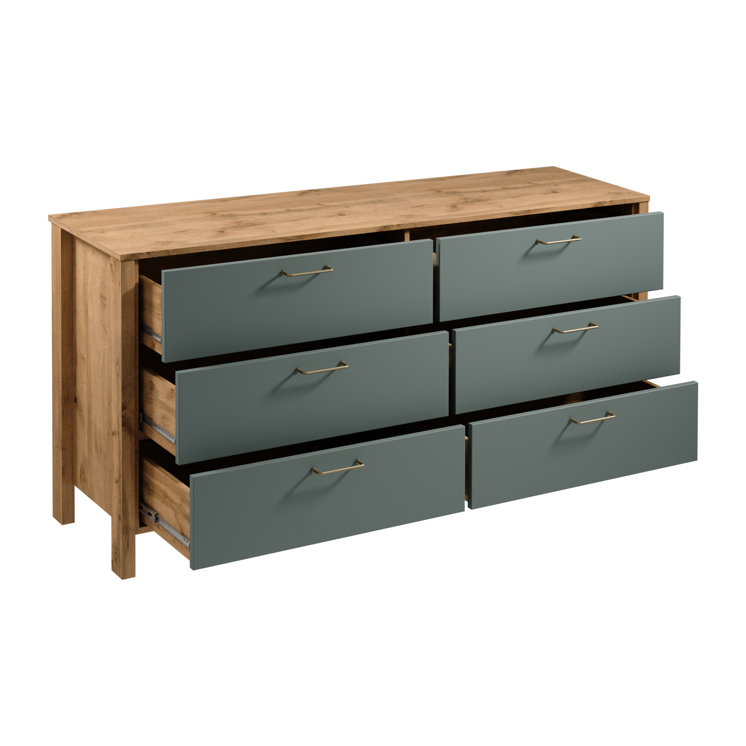 Komoda INDYGO K6S, Dub Wotan/Zelená