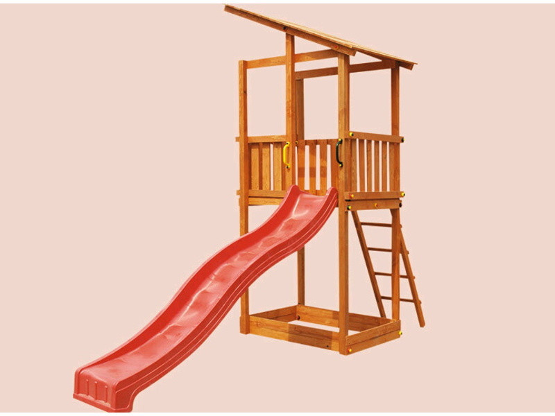 Dětské zahradní hřiště se skluzavkou z masívu . Hřiště se používá na zahradách pro zpestření dětských dní, rozvíjení dětské obratnosti a procvičování motorické zručnosti. Děti mají velmi rády skluzavku, která jim dodá spousty zábavy a vzrušení při dětských hrách.