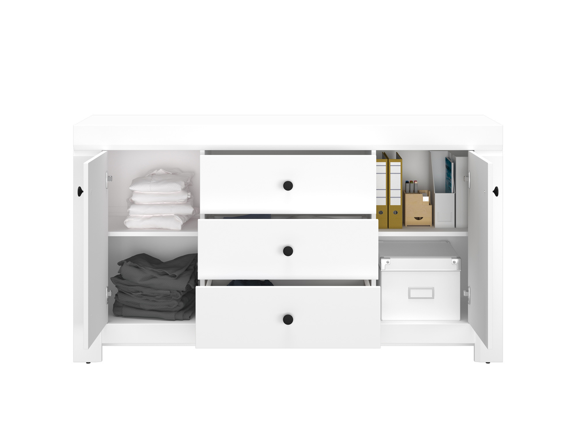 V závislosti na umístění může komoda LAHTI 09 plnit různé funkce. Nábytek je díky své funkčnosti ideálním místem pro vystavení fotografií nebo rodinných památek. Kromě toho se komoda vyznačuje stabilitou, která nám zaručuje bezpečnost při používání.