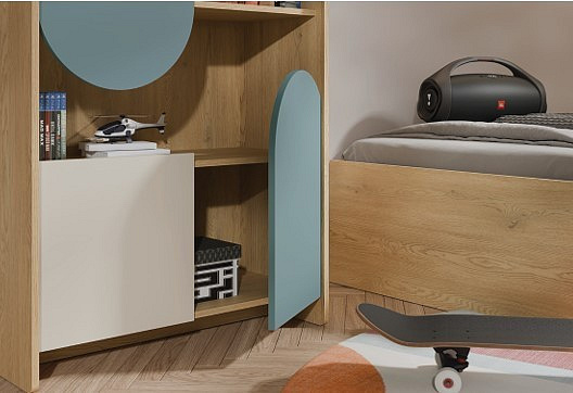 Kolekce dětského nábytku Leya přináší svěží a atraktivní design, který dokonale zútulní každý dětský pokoj. Jednotlivé prvky jsou navržené tak, aby podporovaly praktické uspořádání prostoru a nabídly dostatek úložných možností pro každodenní potřeby. Kvalitní zpracování a odolné materiály zajišťují dlouhou životnost i při aktivní užívání. Díky široké nabídce prvků lze sestavit pokoj přesně podle potřeb dítěte i dostupného prostoru.