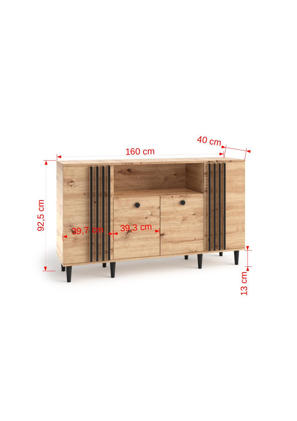 Komoda z kolekce LIVIA je nábytek určený do obývacího pokoje, ložnice nebo kanceláře. Efekt přírodního dřeva podtrhují doplňky a vložky v černé barvě. Udržovaná v moderním stylu jistě přitahuje pozornost. Jednoduché a zároveň funkční. Doporučujeme seznámit se s ostatními produkty z kolekce LIVIA.