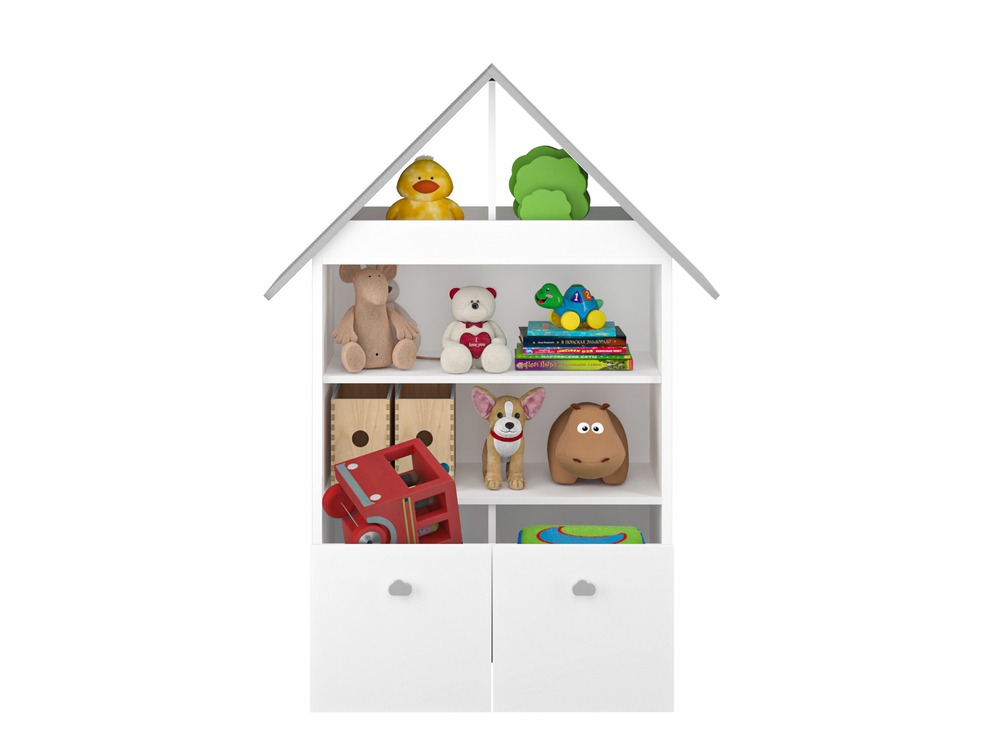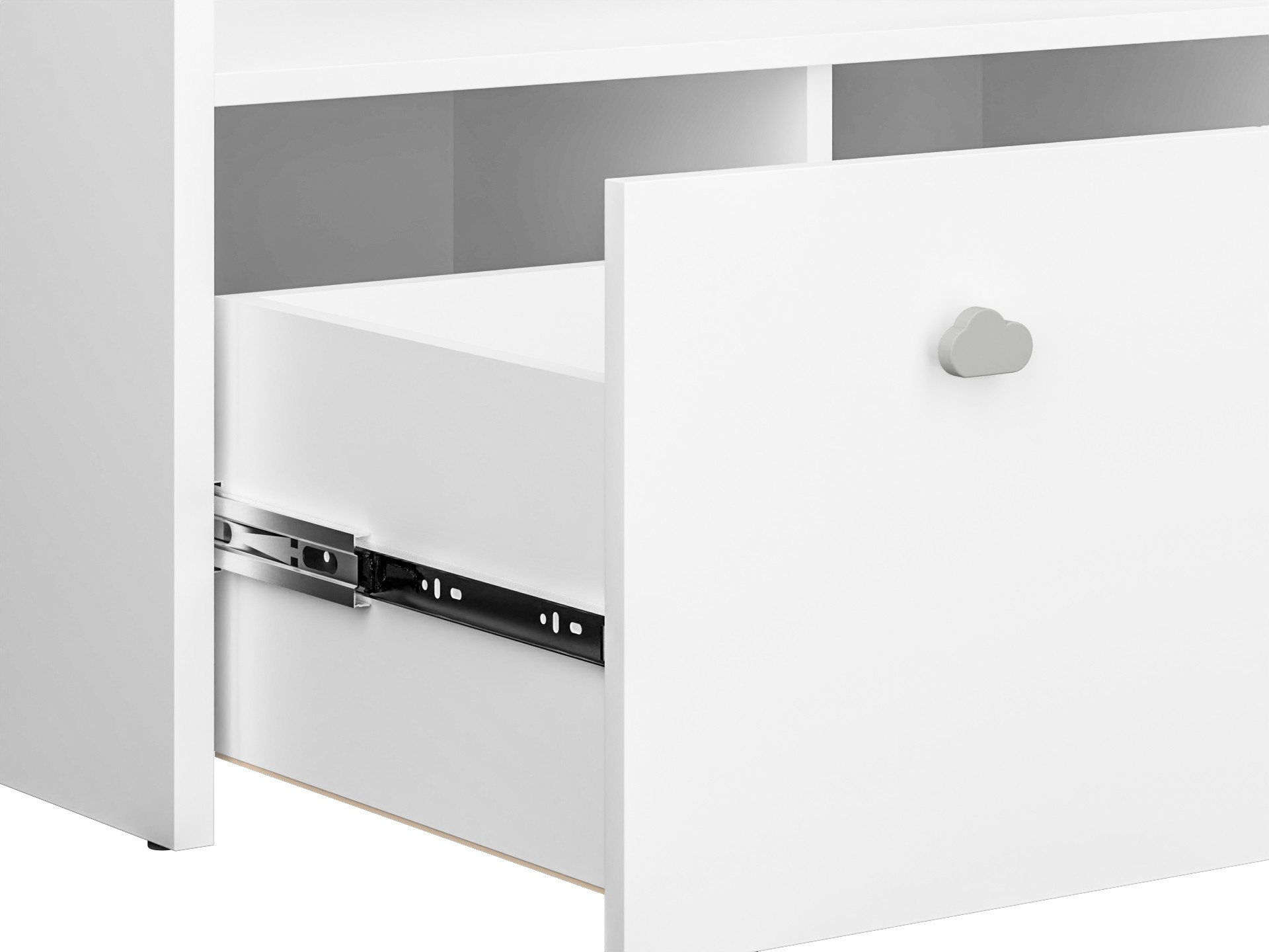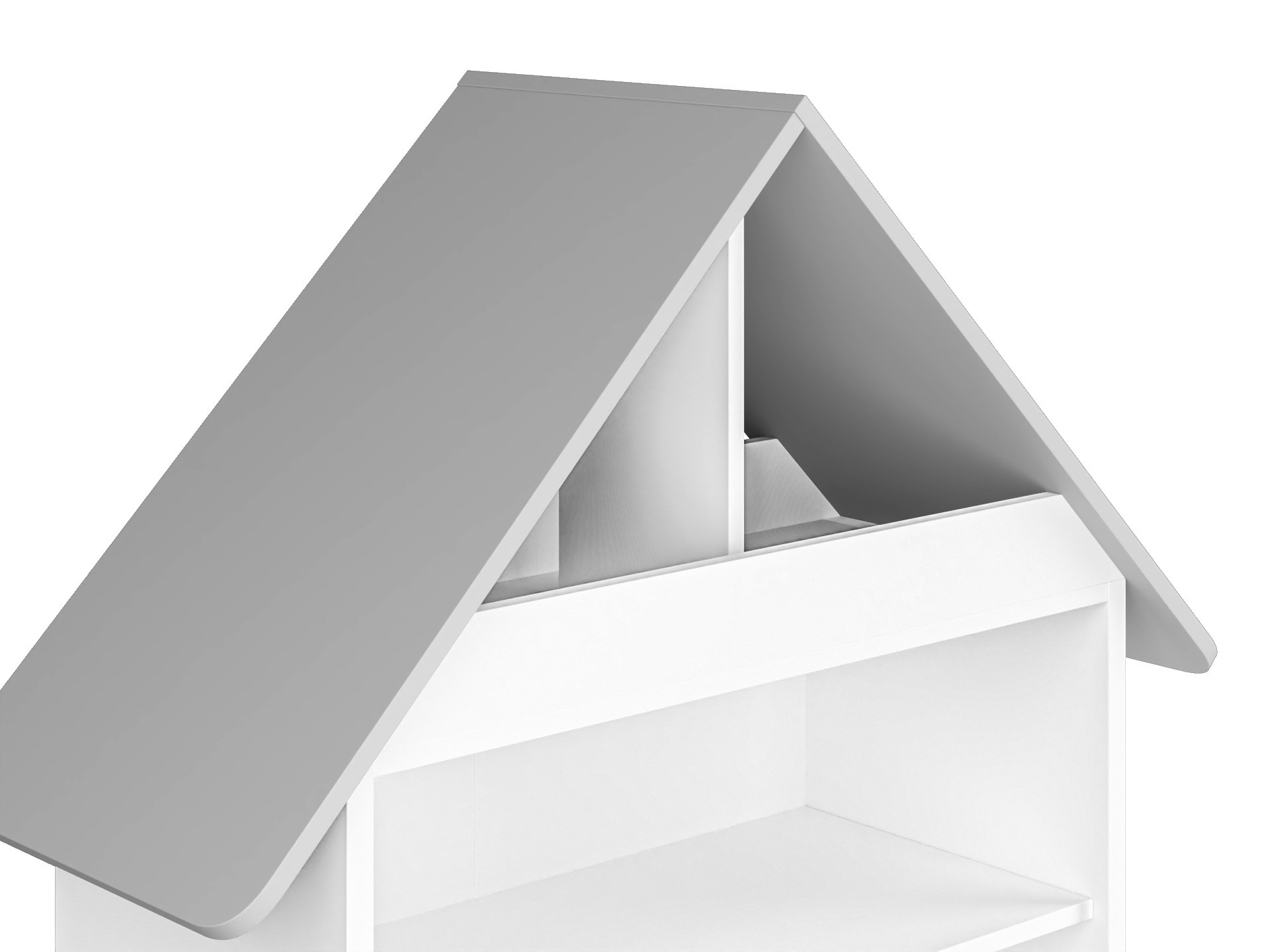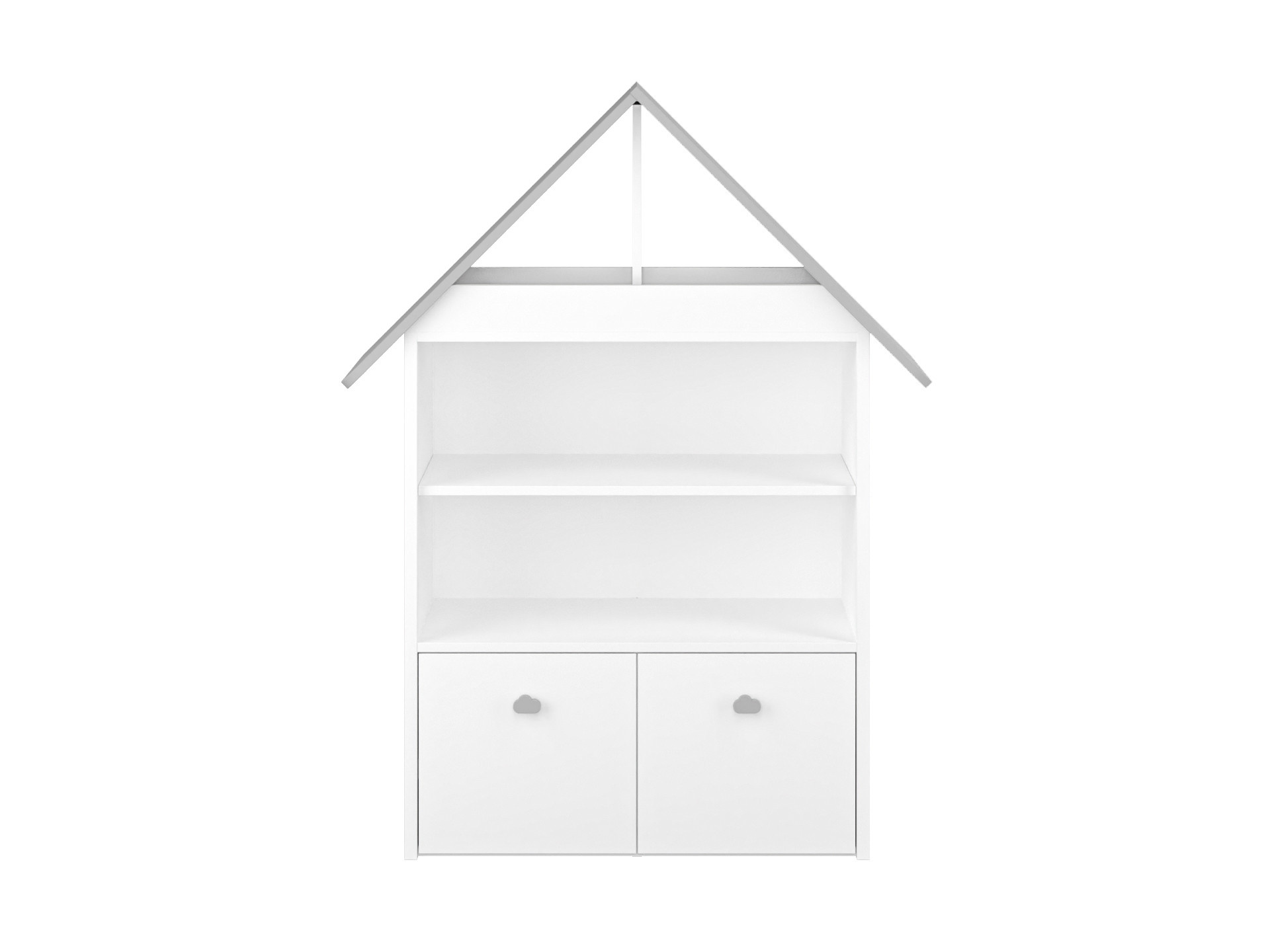 Komoda LOEN 03 je ergonomický kus nábytku s originálním designem. Tvar kvádru připomínající dům je návrhem, který podnítí fantazii vašeho dítěte a stane se místem pro mnoho kreativních her. Mezi hlavní výhody tohoto nábytku patří především dvě velmi prostorné zásuvky, do kterých můžete umístit např. dětské hračky. Komoda se navíc vyznačuje čtyřmi otevřenými výklenky, takže si dítě může vystavit své oblíbené předměty. Nábytek se vyznačuje krásnými gumovými úchytkami ve tvaru obláčku. Bílá a šedá barva zajistí volnost designu a snadno umožní zařídit dívčí i chlapecký pokoj.