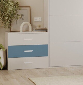 Barva dodává komodě LUMIK 3S moderní a sofistikovaný vzhled, který se snadno kombinuje s různými styly interiéru. Tato barva přináší do vašeho domova klid a eleganci, zatímco její jemný odstín zajišťuje, že komoda nebude působit příliš dominantně.