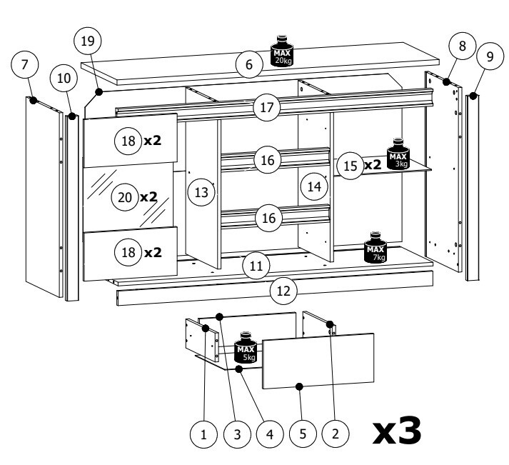 : Nábytek je dodáván v demontu. Součástí nábytku je montážní plánek včetně všech potřebných spojovacích materiálů. V případě potřeby lze objednat montáž nábytku.