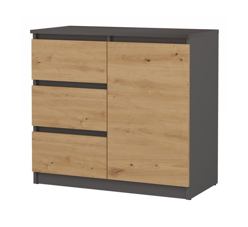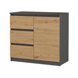 Komoda Malvína 1D3S, antracit/dub artisan