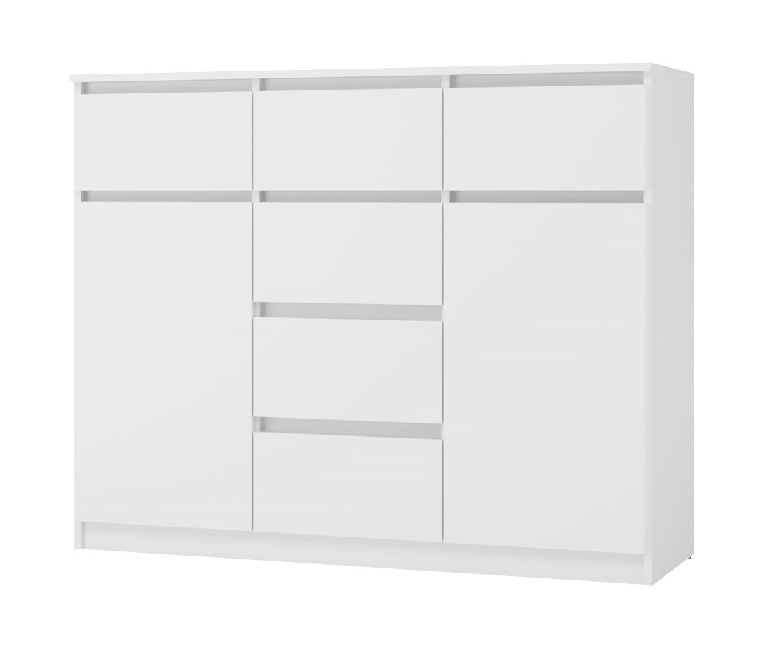 Nadčasová komoda Malvína v minimalistickém designu nabízí díky svému provedení dostatek úložného prostoru a univerzální použití v kterékoliv místnosti vašeho bytu či domu. Bezúchytková čela zásuvek a dvířek zajistí pohodlné používání a dokreslí moderní a útulný charakter vašeho interiéru. Komoda je vyrobena ze snadno udržovatelného lamina, hrany jsou zakončené vysoce odolným ABS materiálem.