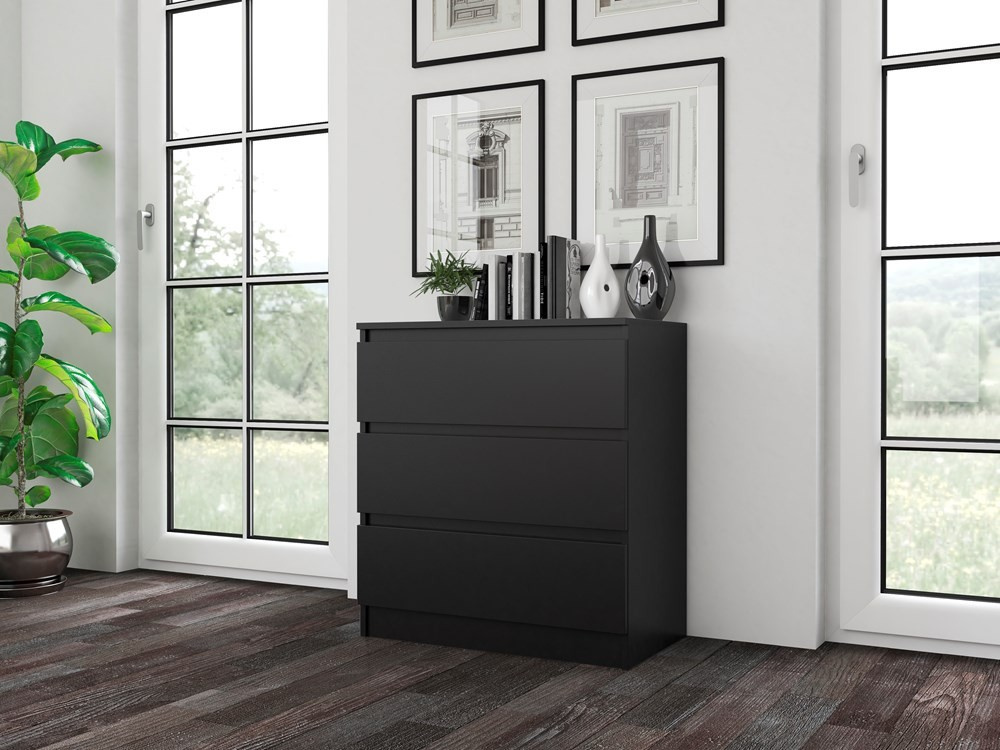 Nadčasová komoda Malvína v minimalistickém designu nabízí díky svému provedení dostatek úložného prostoru a univerzální použití v kterékoliv místnosti vašeho bytu či domu. Bezúchytková čela zásuvek zajistí pohodlné používání a dokreslí moderní a útulný charakter vašeho interiéru. Komoda je vyrobena ze snadno udržovatelného lamina, hrany jsou zakončené vysoce odolným ABS materiálem.