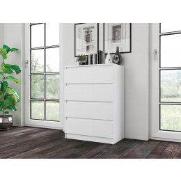 Komoda Malvína M4 je vyrobená v jednoduchém a nadčasovém designu. Má rovné a čisté linie, které vytvoří útulný, pohodový a příjemný interiér. Komoda díky svému provedení nabízí univerzální použití, dostatek úložného prostoru a najde uplatnění v kterékoliv místnosti Vašeho bytu. Výborně se hodí např. do ložnice, do dětského i studentského pokoje, ale i do pracovny či předsíně. Komodu nabízíme v několika provedeních. Je dodávaná v demontu. Součástí je montážní návod včetně všech spojovacích prvků. Vyobrazené dekorace nejsou v ceně.