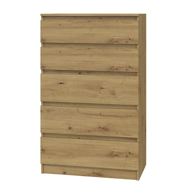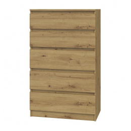 Nadčasová komoda Malvína v minimalistickém designu nabízí díky svému provedení dostatek úložného prostoru a univerzální použití v kterékoliv místnosti vašeho bytu či domu. Bezúchytková čela zásuvek zajistí pohodlné používání a dokreslí moderní a útulný charakter vašeho interiéru. Komoda je vyrobena ze snadno udržovatelného lamina, hrany jsou zakončené vysoce odolným ABS materiálem.