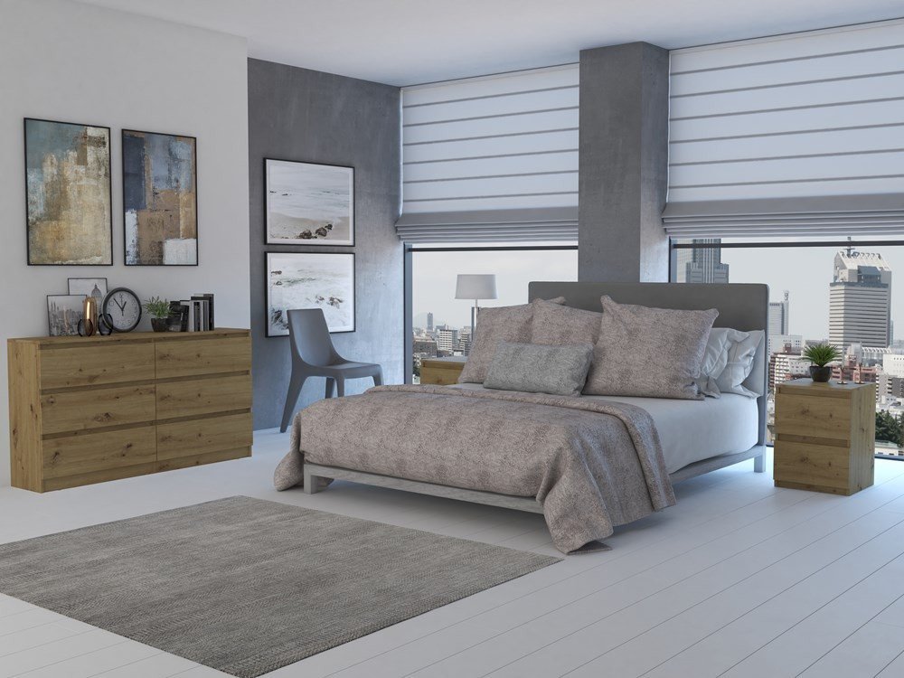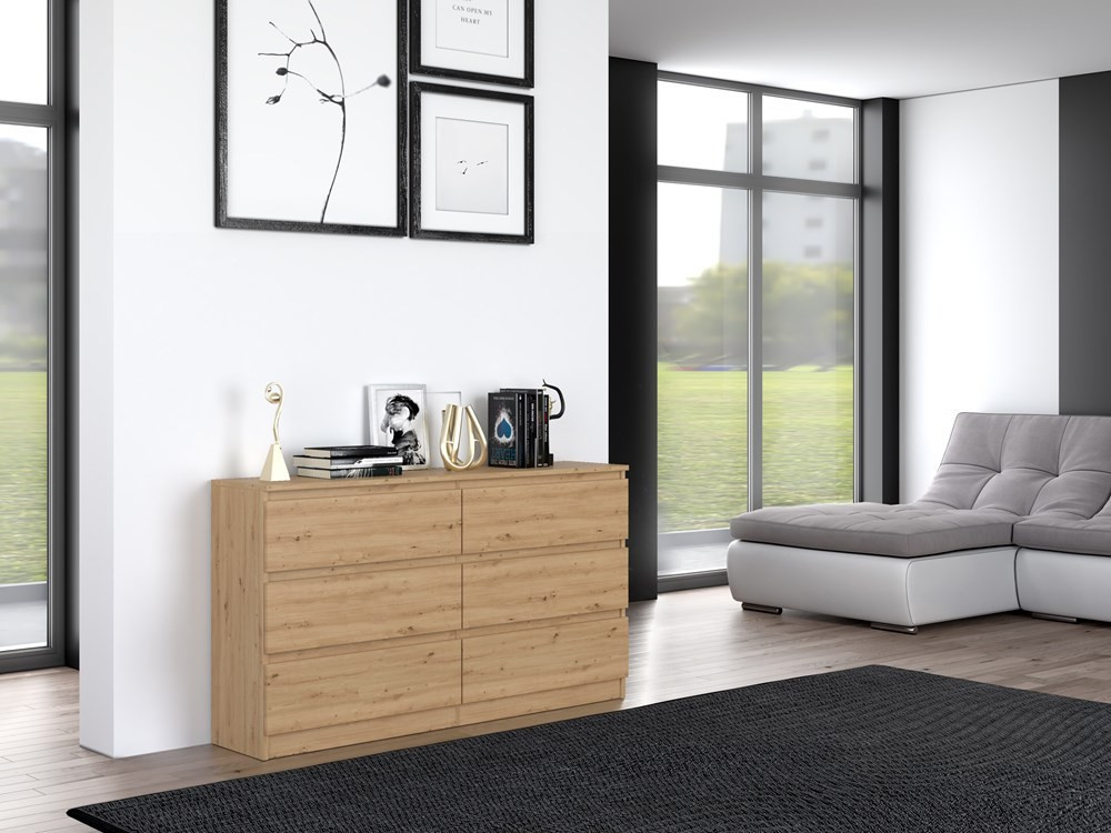 Nadčasová komoda Malvína v minimalistickém designu nabízí díky svému provedení dostatek úložného prostoru a univerzální použití v kterékoliv místnosti vašeho bytu či domu. Bezúchytková čela zásuvek zajistí pohodlné používání a dokreslí moderní a útulný charakter vašeho interiéru. Komoda je vyrobena ze snadno udržovatelného lamina, hrany jsou zakončené vysoce odolným ABS materiálem.