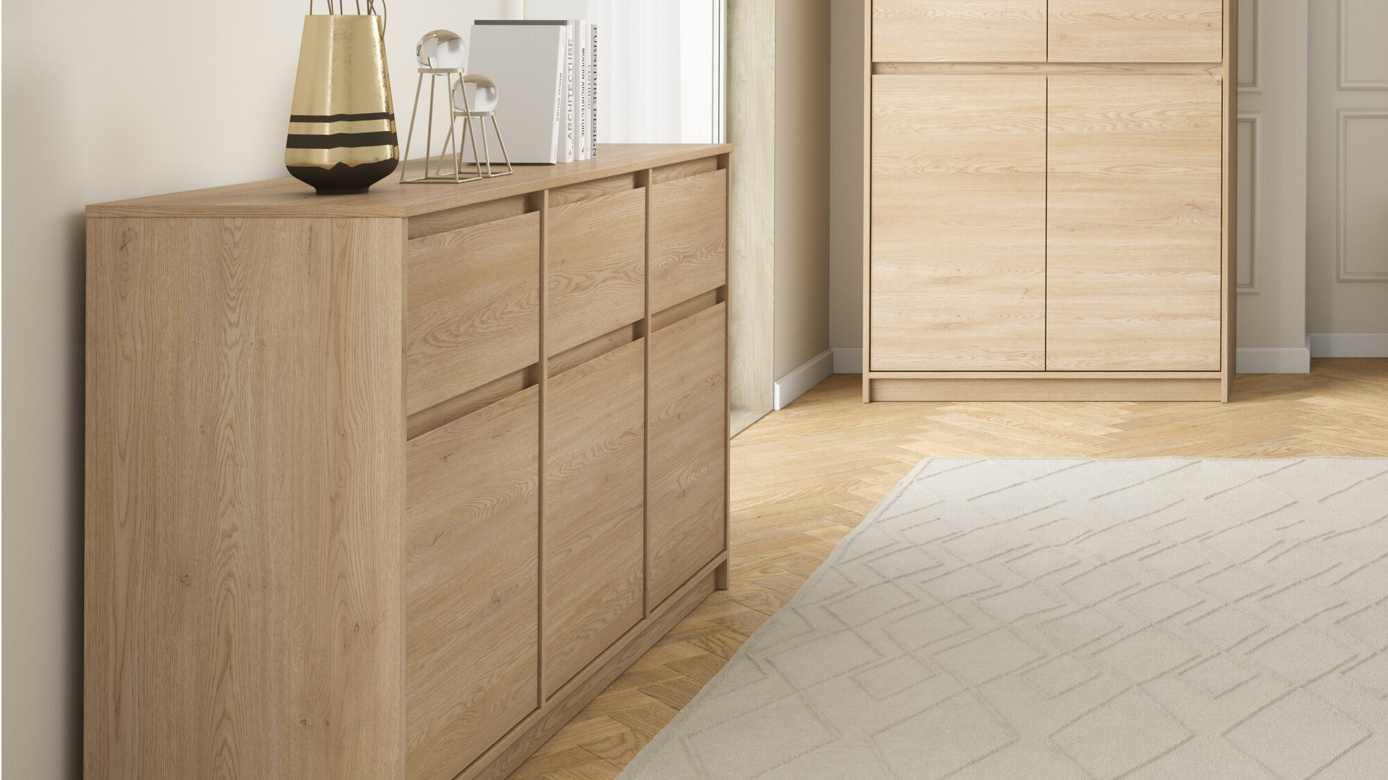 Systém MANAMI je jednoduchý bezúchytový systém v teplém dekoru Dub Cremona, který se hodí do každého interiéru.