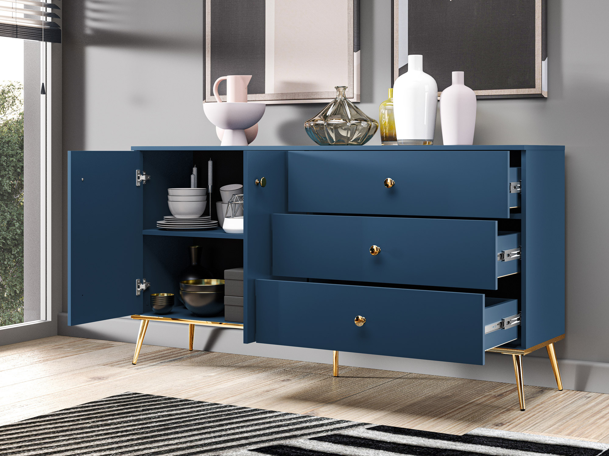 Komoda MARINE 03, Tmavě modrá/Zlatá