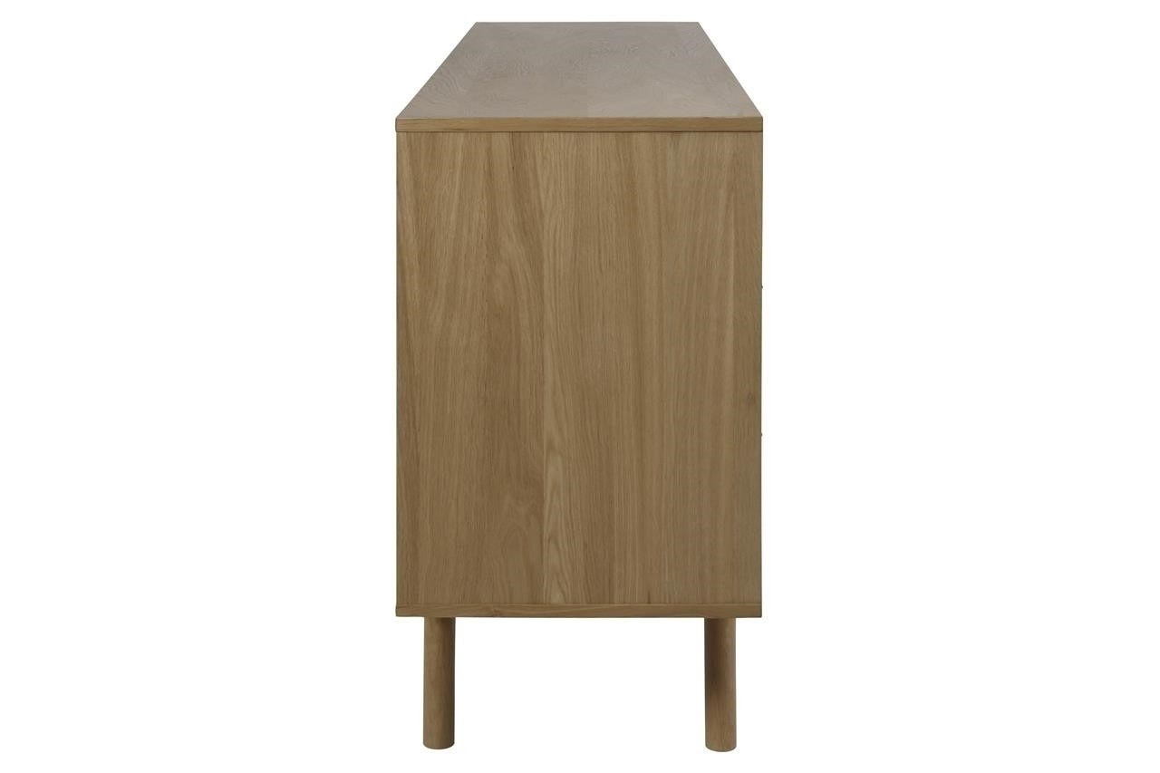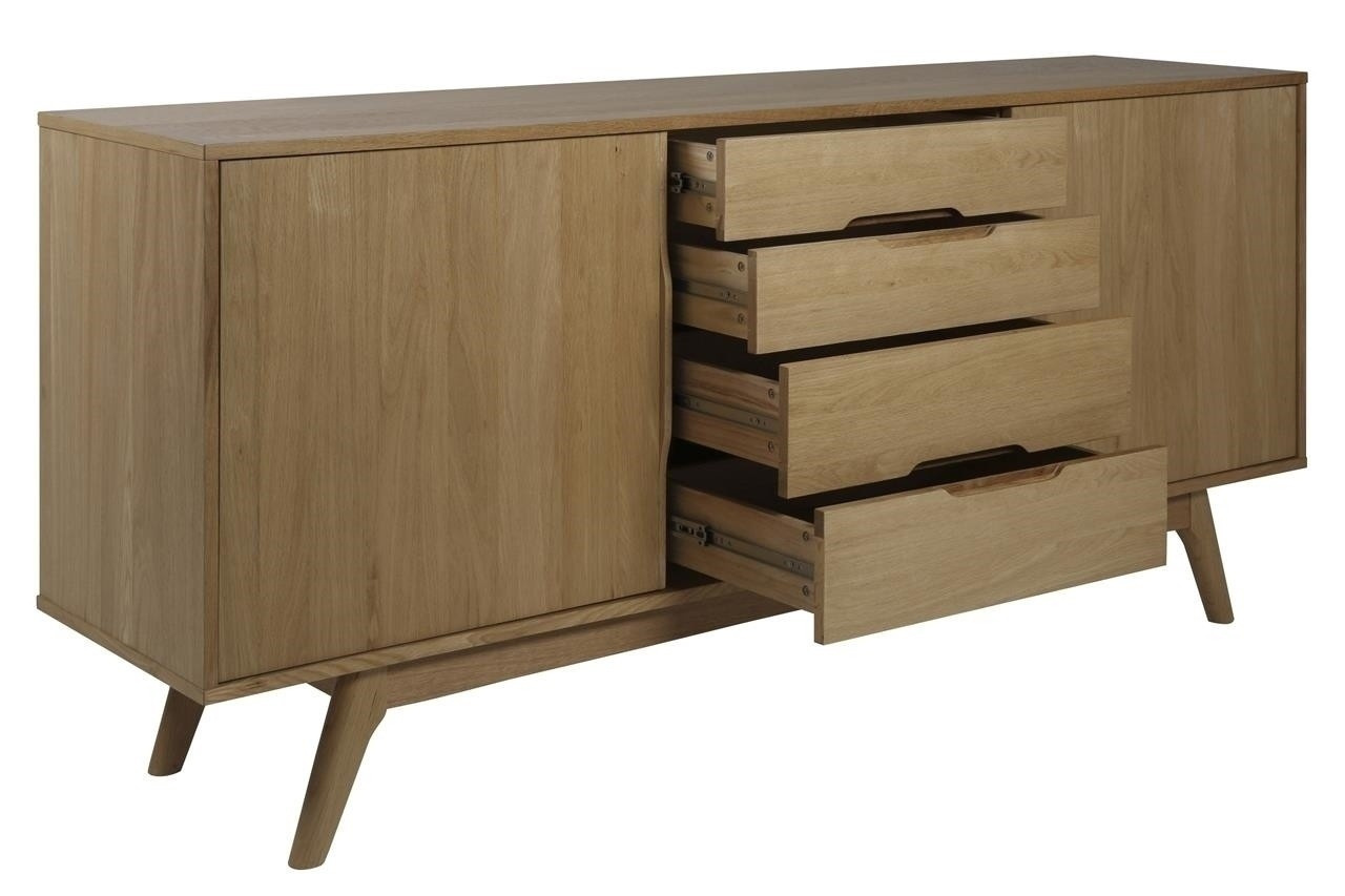 Komoda Marte byla vyrobena ze dřeva a dubové dýhy pokryté vrstvou oleje, který kromě ochrany před odřením či poškozením zvýrazňuje krásu dřeva. Komoda má 4 zásuvky a 2 police. Komoda má také posuvné panely, které mohou zakrýt jak část se zásuvkami, tak i s policemi. Celý nábytek byl udržován ve stylu 70. let.
