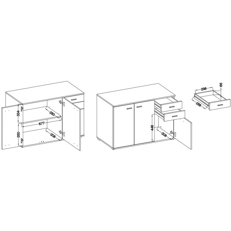 Funkční komoda Mileta v nadčasovém minimalistickém designu nabízí dostatek úložného prostoru a najde uplatnění v každém prostoru vašeho bytu či domu. Komoda je vyrobená z kvalitního a snadno udržovatelného lamina. Série Mileta nabízí komody v různých provedeních a barvách.