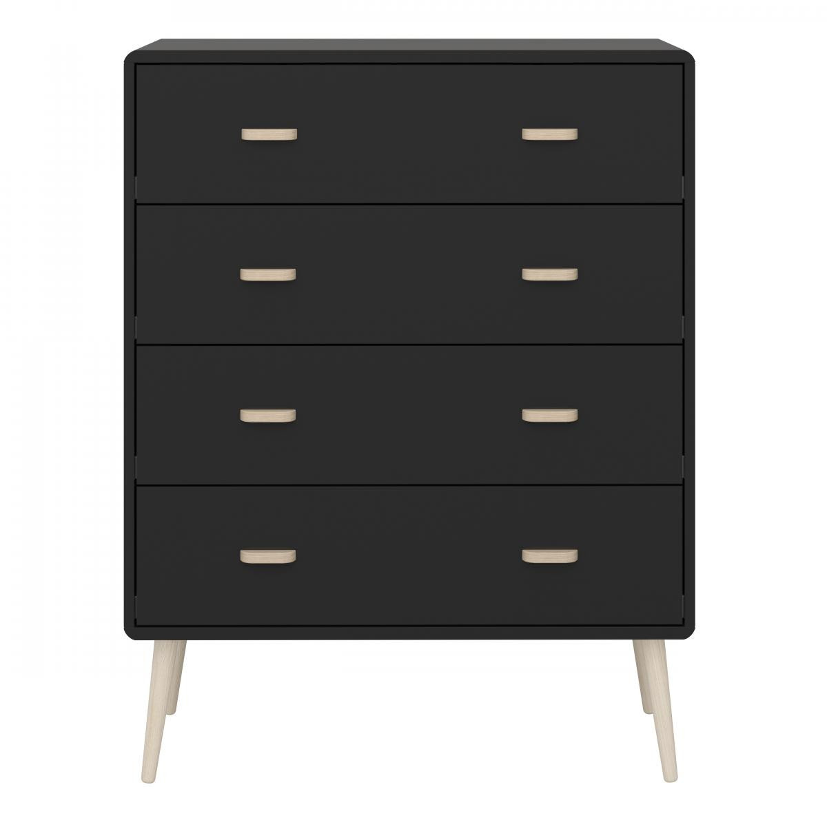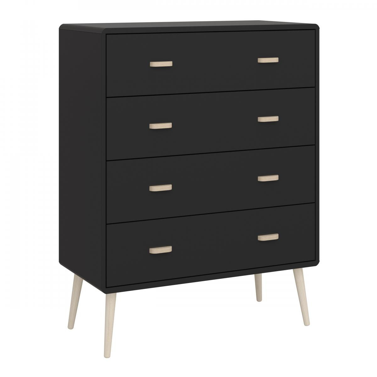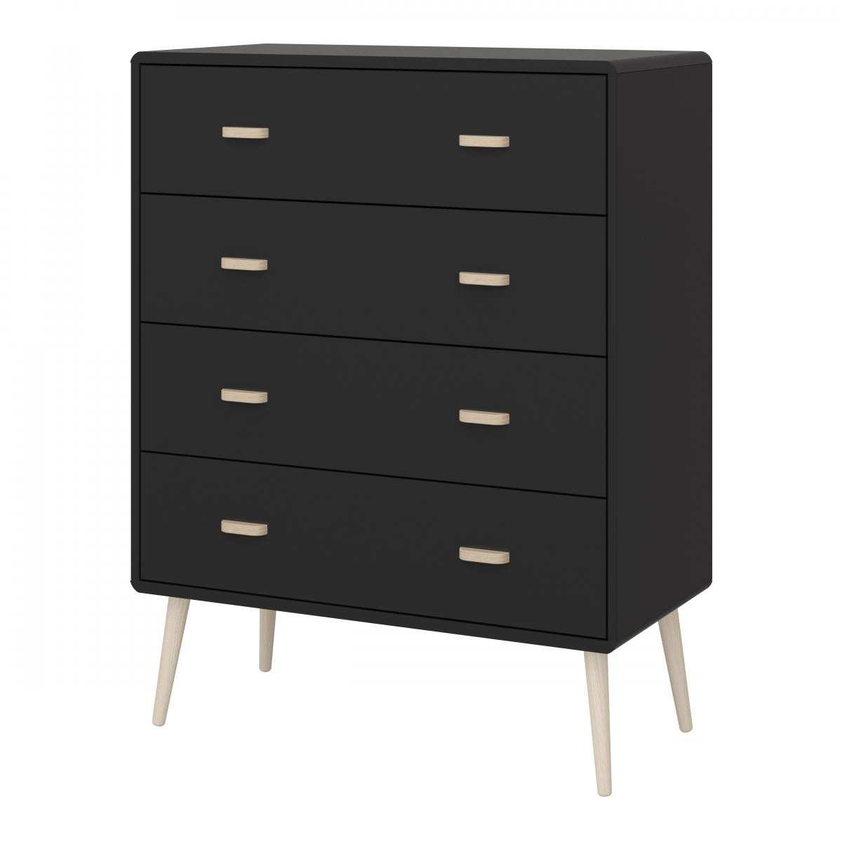 Série Miva dánského výrobce je moderní a stylová řada jasně inspirovaná severským minimalismem. Nábytek vyjadřuje jemnost, styl a klasickou eleganci díky širokým dubovým úchytkám a kulatým nožkám ze stejného materiálu. Sortiment této řady vyrobené z odolného MDF dřeva tvoří komody, noční stolky, botník a také stůl ve stejně vkusném designu. Zboží je dodáváno v demontu, součástí je schematický návod na montáž.