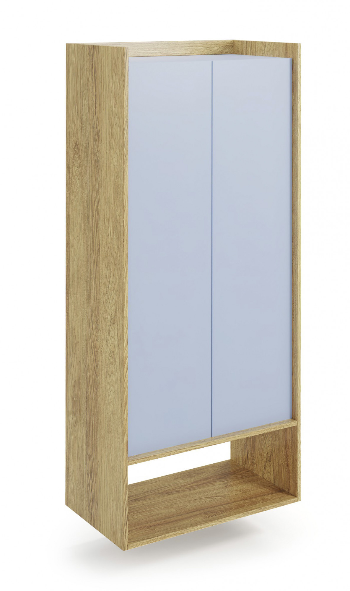 rozměry: 78/41/179 cm, materiál: nábytková deska potažená dýhou gr.18 mm / abs hrany / systém otevírání push-click, barva: tělo - přírodní hickory, čela - horizontální modrá