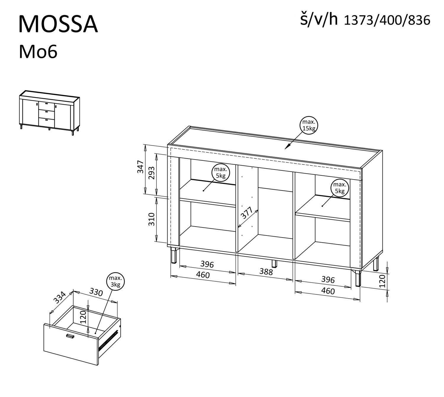 - K Vitríně MOSSA M03 a komoda MOSSA M05 je možnost dokoupení LED osvětlení
