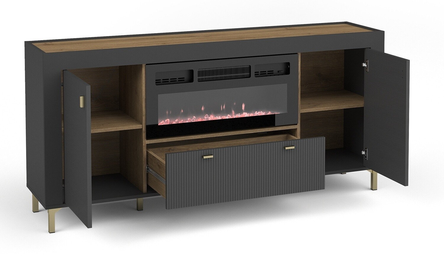 Komoda MOSSA MO7 s krbem, Dub Whisky/Černý mat