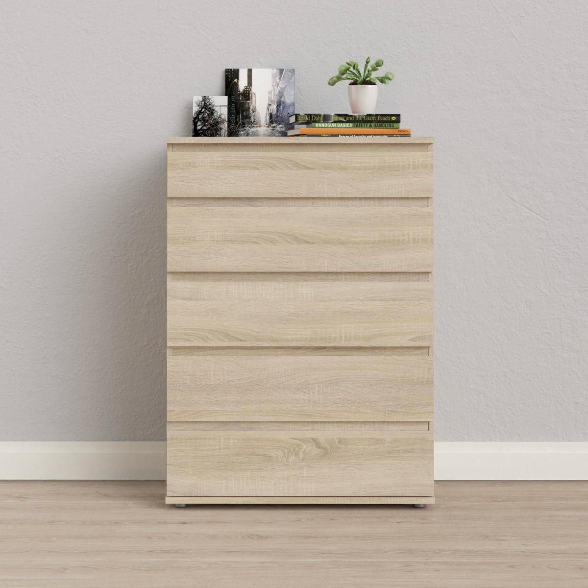 Komoda Nibby je skvělou variantou jak rošířit úložný prostor, kterého v každé domácnosti není nikdy dost. Komoda Nibby nabízí spoustu možností využití nejen v ložnici nebo obývacím pokoji, ale také v dětském pokoji, nebo v předsíni. Můžete do ní uložit např. oblečení, hračky, dokumenty, deskové hry, sbírku CD, nebo nezaložené fotografie. Komodu nabízíme v několika dekorech a jistě si najdete tu pravou, která bude ladit s Vaším interiérem. Komoda je vyrobená z lamina, které je velmi snadné na údržbu. Při výrobě je kladen důraz na ekologii. Je vyráběna v souladu s ohledy na životní prostředí a řadí se tak k eco-friendly výrobkům. Komoda je dodávaná v demontu. Součástí balení je montážní návod včetně všech potřebných spojovacích prvků. Vyobrazené doplňky a dekorace nejsou v ceně.