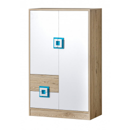 Komoda NICO 07, Světlý Dub/Bílá/Tyrkys