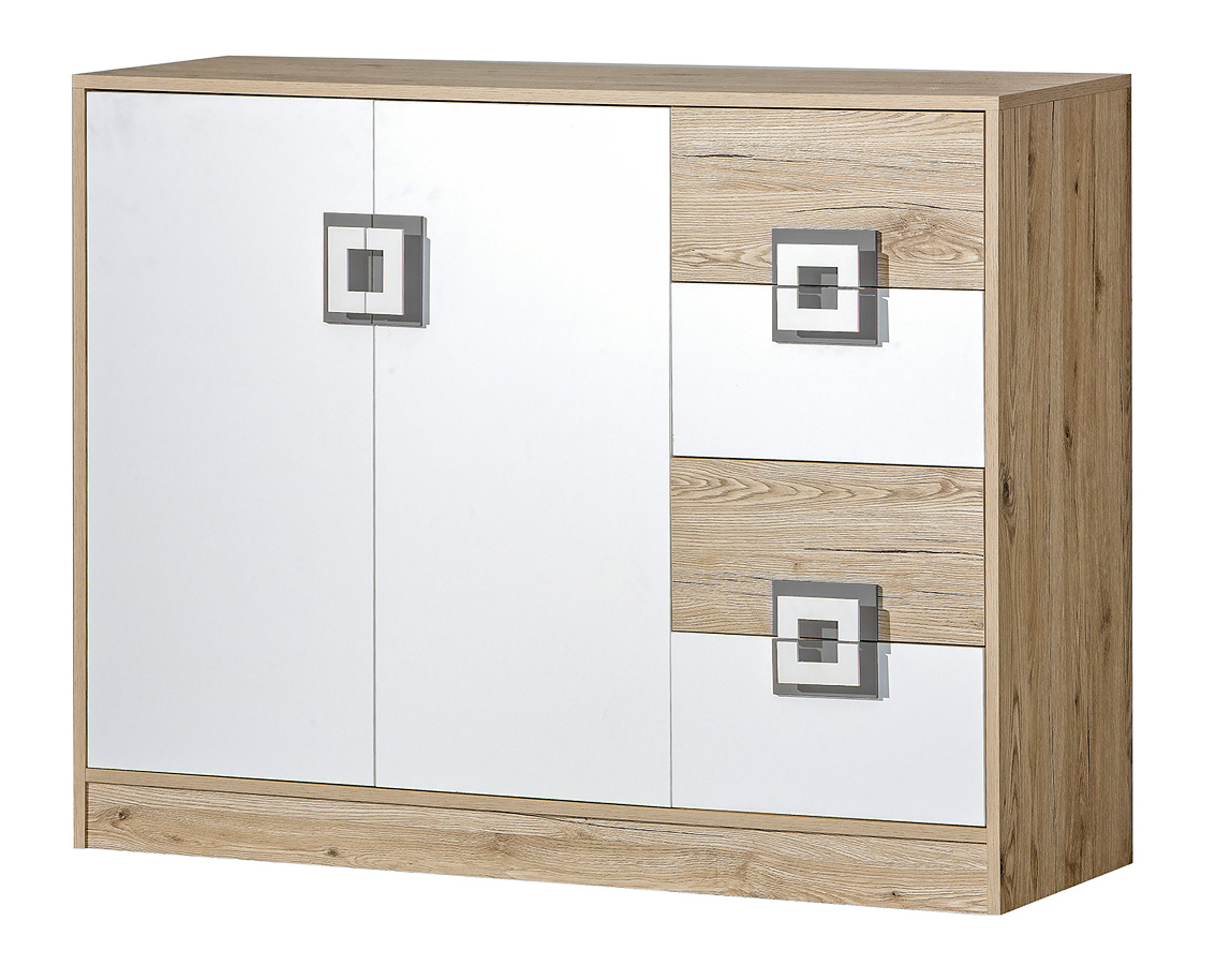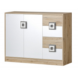 Komoda NICO 08, Světlý Dub/Bílá/Šedá