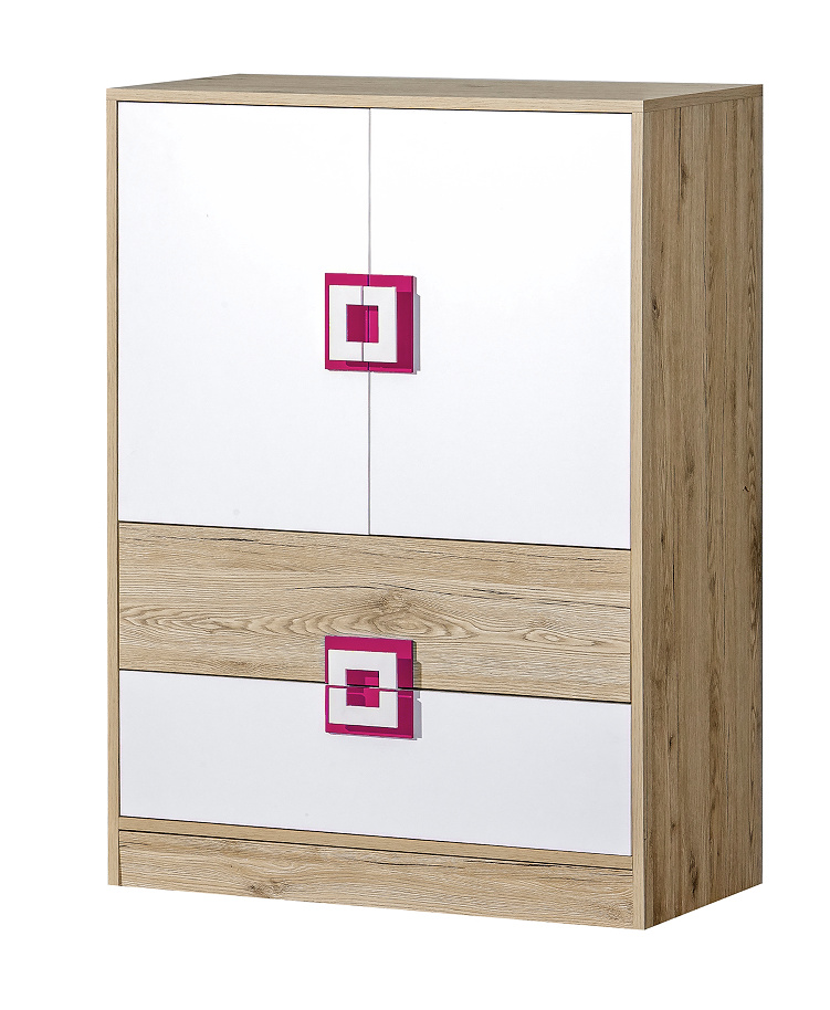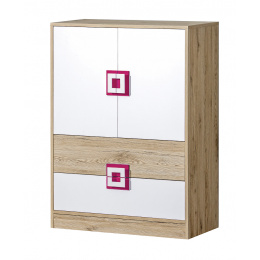 Komoda NICO 09, Světlý Dub/Bílá/Růžová