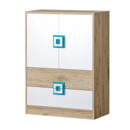 Komoda NICO 09, Světlý Dub/Bílá/Tyrkys