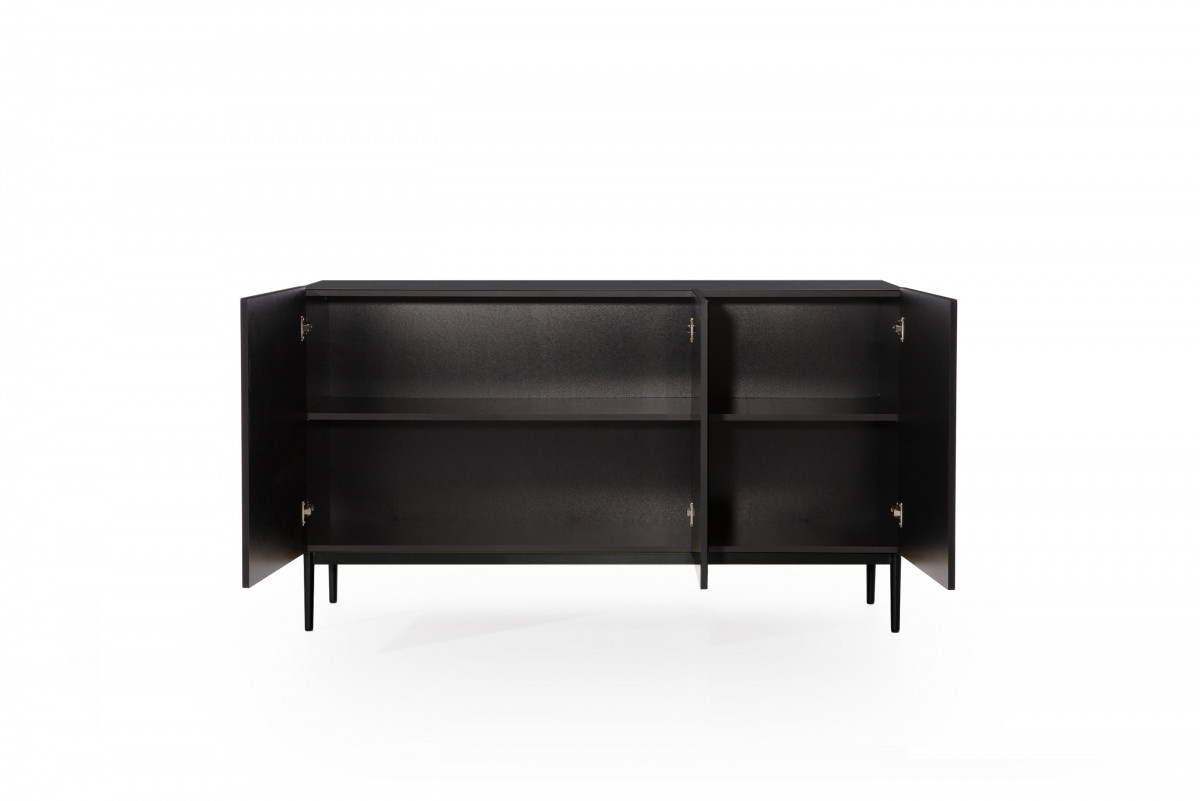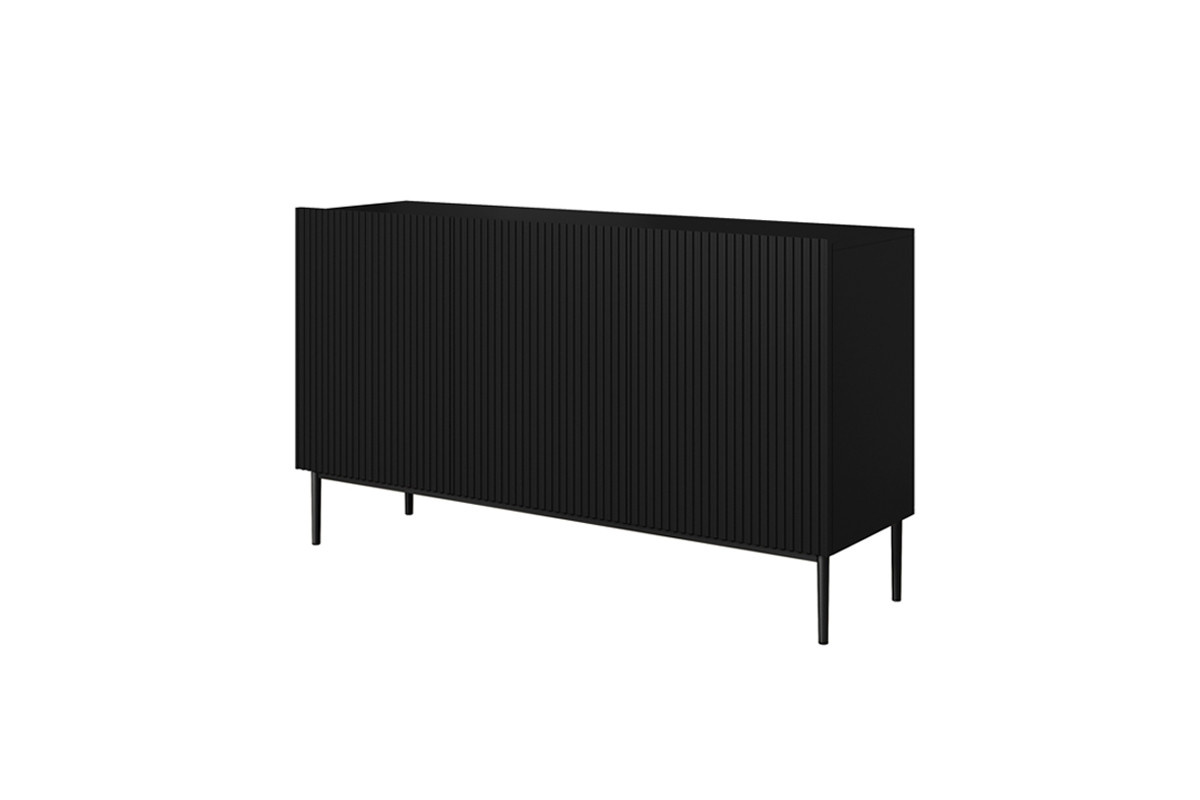 Nicole 150 cm komoda s drážkovaným čelem na kovových nohách - matná černá / černé nožičky, šířka: 150, výška: 85, hloubka: 45, výška nožiček: 20