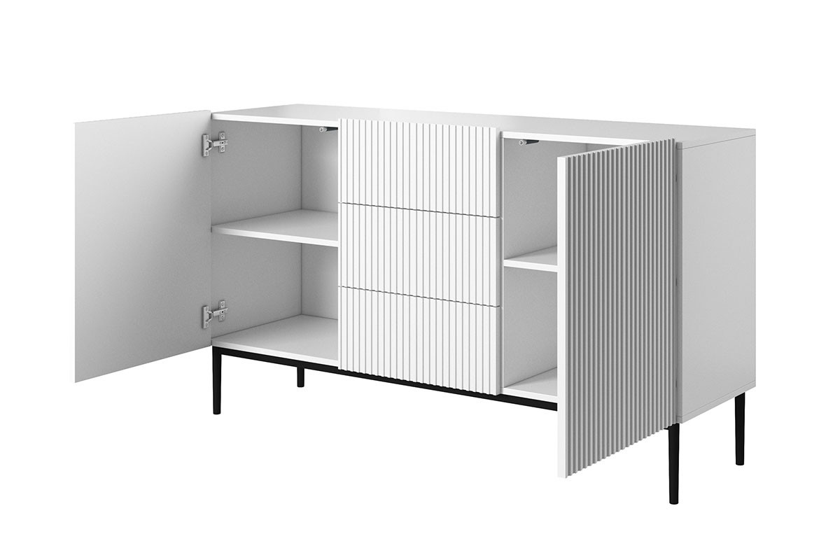 Nicole 150 cm komoda se třemi zásuvkami - bílý mat / černé nohy, šířka: 150, výška: 85, hloubka: 45, výška nohou: 20