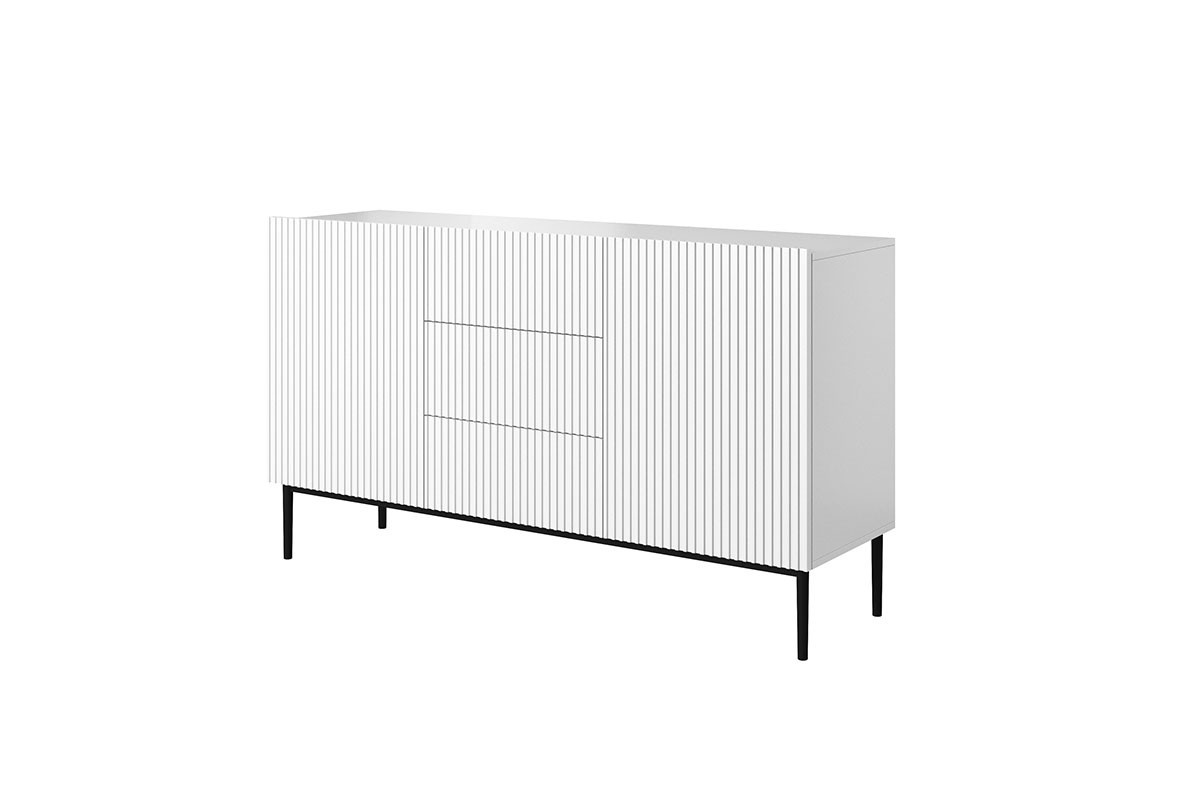 Komoda Nicole 150 cm se třemi zásuvkami - bílá matná / černé nohy