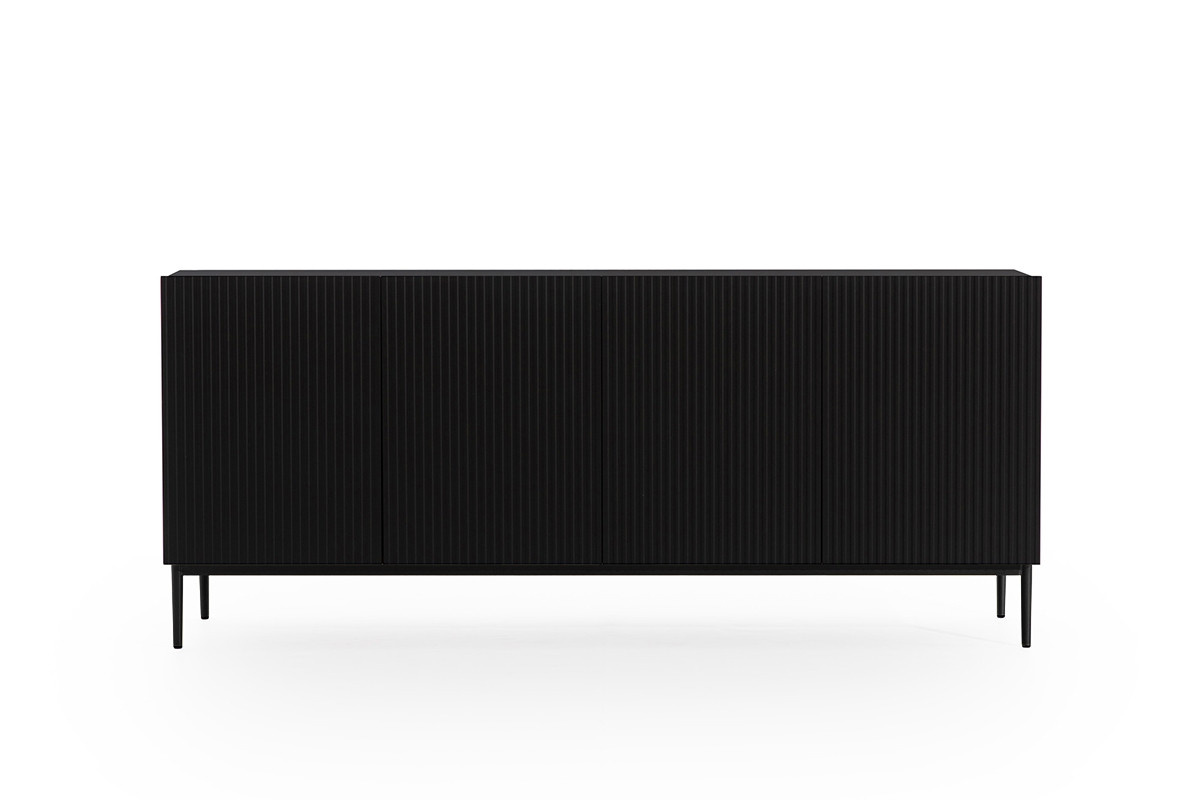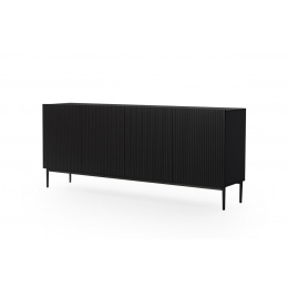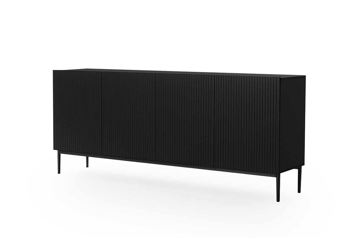 Sníte o pohádkovém interiéru? Je vám glamour styl nejbližší? Tento návrh komody v sytě černé barvě vás jistě zaujme. Jeho nespornou předností je bezpochyby originální rýhované čelo a jemné, vkusné nožky. Komoda navíc vyniká neuvěřitelnou solidností zpracování. Má stabilní rám, který umožňuje podepřít celou konstrukci na pouhých čtyřech nohách. Vylepší interiér obývacího pokoje i ložnice. Dodejte svěžest svému pokoji - vsaďte na tento model! Komoda Nicole 200 cm s drážkovaným čelem na kovových nohách - matná černá / černé nohy, šířka: 200, výška: 85, hloubka: 45, výška nohou: 20.
