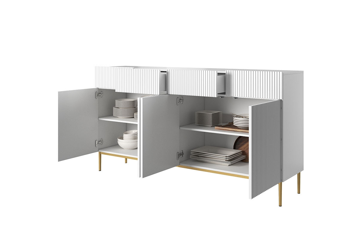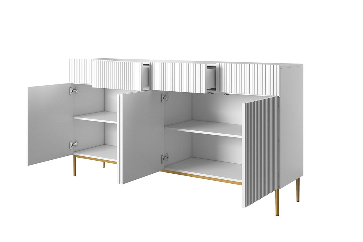 Nicole 200 cm komoda se čtyřmi zásuvkami - bílý mat / zlaté nožičky, šířka: 200, výška: 105, hloubka: 45, výška nožiček: 20