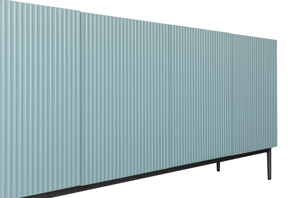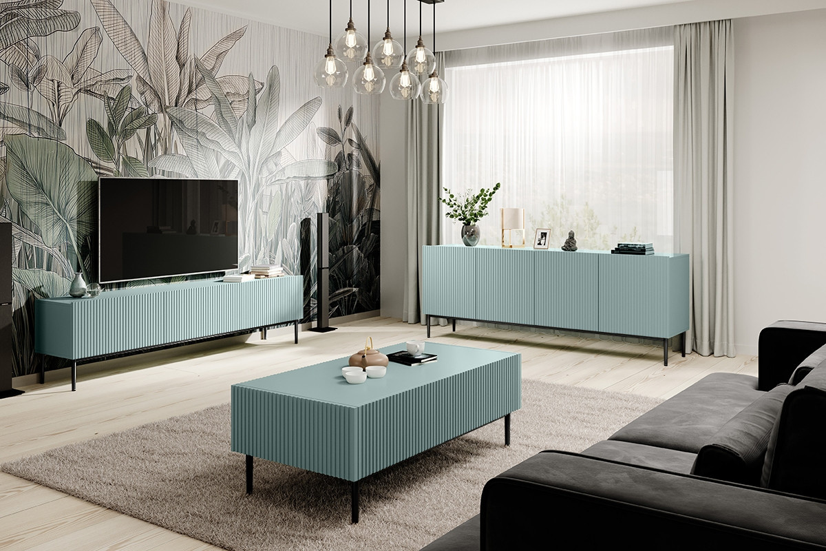Sníte o pohádkovém interiéru? Je vám glamour styl nejbližší? Tento návrh komody v šalvějovém odstínu vás jistě zaujme. Jeho nespornou předností je bezpochyby originální drážkované čelo a jemné, vkusné nožky v černé barvě. Komoda navíc vyniká neuvěřitelnou solidností zpracování. Má stabilní rám, který umožňuje podepřít celou konstrukci na pouhých čtyřech nohách. Vylepší interiér obývacího pokoje i ložnice. Dodejte svěžest svému pokoji - vsaďte na tento model!komoda Nicole 200 cm s drážkovaným čelem na kovových nožkách - MDF šalvěj / černé nožky, šířka: 200, výška: 85, hloubka: 45, výška nožek: 20.